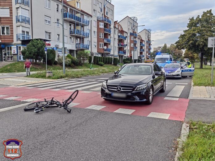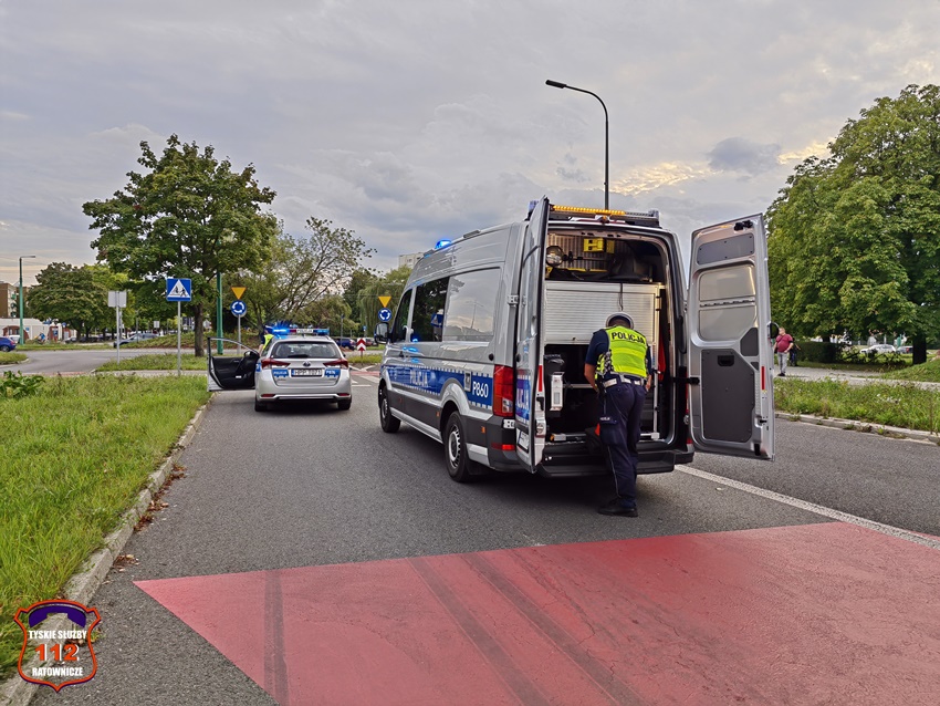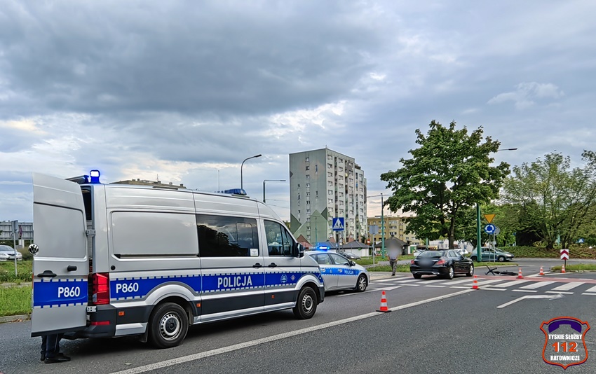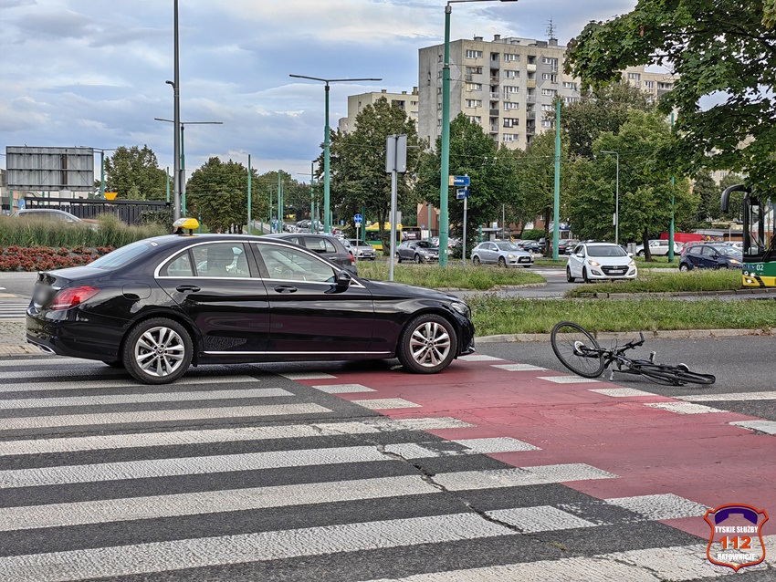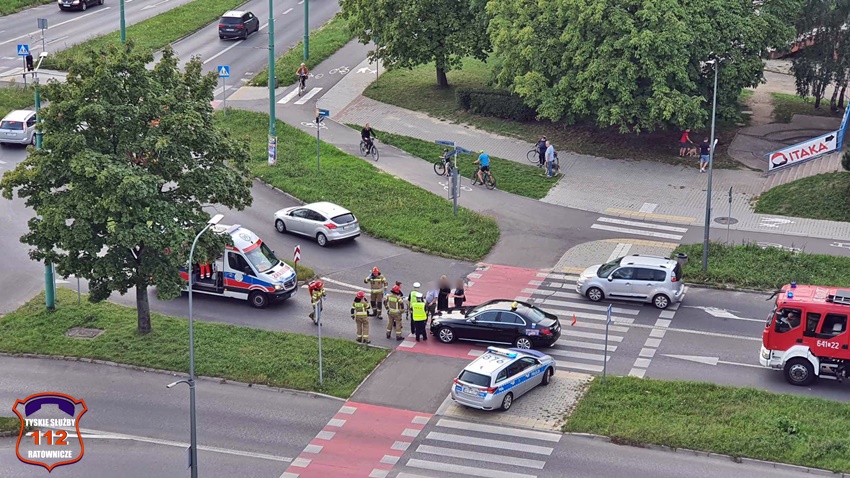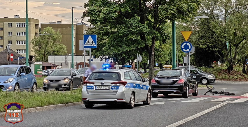 22 września około godziny 17:20 dyżurny SK KM PSP Tychy otrzymał zgłoszenie o potrąceniu rowerzysty na ścieżce rowerowej na al. Bielskiej w rejonie ronda Polonia. Na miejsce zgłoszenia poza zastępem strażaków JRG Tychy zadysponowany został ZRM oraz Policja. Po przybyciu ratowników miejsce zgłoszenie potwierdziło się. Na czas działań wjazd na rondo został zablokowany. Rowerzysta został potrącony przez osobowego Mercedesa (taxi). Poszkodowany rowerzysta trafił pod opiekę ratowników medycznych i został przetransportowany do szpitala. Kierujący samochodem osobowym był trzeźwy, a kierowca jednośladu wydmuchał 1,12 mg/l co daje blisko 2,35 promila. Z ustaleń pracujących na miejscu Policjantów sprawcą zdarzenia jest kierowca osobówki. Na szczęście rowerzysta w wyniku zdarzenia nie doznał poważnych obrażeń i sprawa mogła zakończyć się w postępowaniu mandatowym na kierowcę osobówki. Rowerzysta za jazdę pod wpływem alkoholu również został ukarany mandatem karnym.