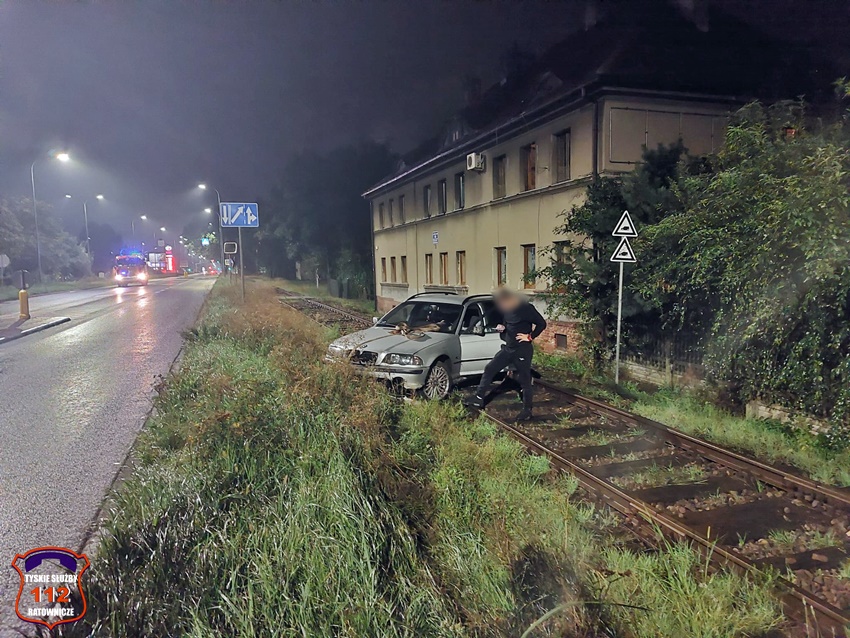 23 września około godziny 21 dyżurny SK KM PSP Tychy otrzymał zgłoszenie o zdarzeniu drogowym na ul. Mikołowskiej za skrzyżowaniem z łącznikiem ul. Asnyka. Ze zgłoszenia wynikało, że kierowca osobowego BMW stracił panowanie nad swoim pojazdem i wypadł z drogi na tory prowadzące do tyskiego browaru. Na miejsce zdarzenia przedysponowany został zastęp strażaków działający niedaleko przy niebezpiecznie pochylonym drzewie oraz patrol Policji. Kierowca osobówki ze zdarzenia wyszedł bez szwanku. Pracujący na miejscu Policjanci ukarali kierowcę mandatem, a pojazd z potrzasku wydobyła wezwana na miejsce pomoc drogowa. Po około godzinie działania zostały zakończone.