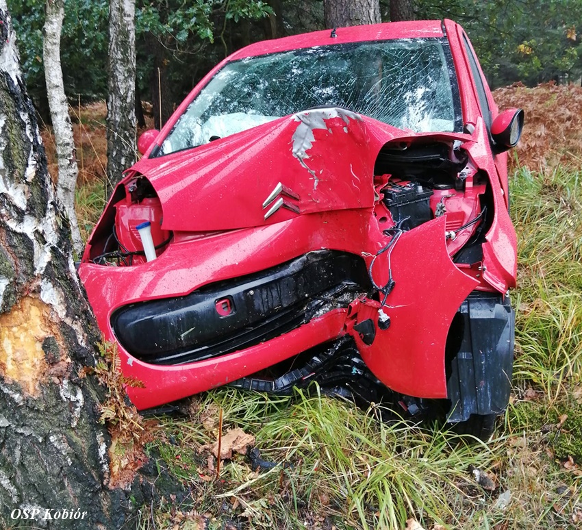 9 października około godziny 9:35 na trasie DK 1 w Kobiórze (572km) w kierunku Tychów doszło do zdarzenia drogowego z udziałem jednego samochodu. Z niewyjaśnionych przyczyn 20 – letnia kobieta kierująca Citroenem utraciła panowanie nad swoim pojazdem i wypadła z drogi uderzając w drzewo. Z pomocą poszkodowanej pospieszyli świadkowie zdarzenia i wezwali na miejsce służby ratunkowe. Do działań zadysponowane zostały zastępy strażaków z OSP Kobiór i JRG Tychy oraz ZRM i Policja. Na czas działań ruch w miejscu zdarzenia odbywał się tylko lewym pasem. Kierująca osobówka trafiła pod opiekę ratowników medycznych, następnie została przetransportowana do szpitala. Działania na miejscu trwały ponad godzinę. Policjanci KPP Pszczyna prowadzą dalsze postępowanie w sprawie tego zdarzenia.