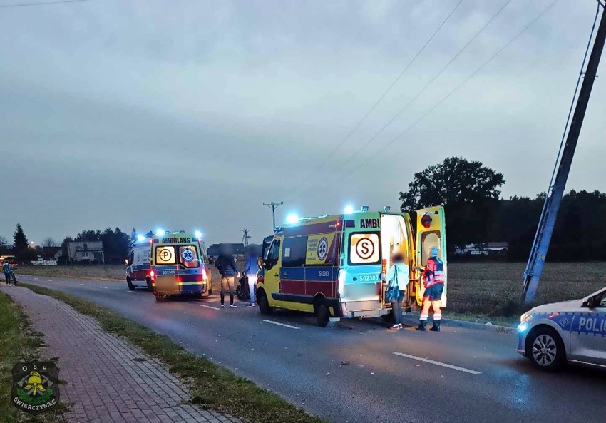 24 października po godzinie 17 na ul. Barwnej w Świerczyńcu doszło do zdarzeni drogowego z udziałem dwóch samochodów osobowych. W zdarzeniu brały udział Mazda oraz Opel. Na miejsce zdarzenia zadysponowane zostały ZRM oraz Policja. Przed przybyciem służb ratunkowych na miejsce z pomocą poszkodowanym pospieszyli świadkowie zdarzenia oraz druh OSP Świerczyniec wracający z pracy do domu. Ruch w miejscu zdarzenia na czas działań został całkowicie zablokowany. Osoby podróżujące pojazdami trafiły pod opiekę przybyłych na miejsce ratowników medycznych. Ze względu na wycieki oraz dużą ilość elementów karoserii na drodze do pomocy wezwani zostali druhowie OSP Świerczyniec. Ze wstępnych ustaleń pracujących na miejscu Policjantów wynika, że sprawcą zdarzenia jest kierowca Mazdy, który wykonując manewr wyprzedzania w miejscu niedozwolonym uderzył w jadącego z naprzeciwka Opla. Działania służb ratunkowych na miejscu zdarzenia trwały blisko dwie godziny. Policjanci KPP Bieruń prowadza dalsze postępowanie w tej sprawie.