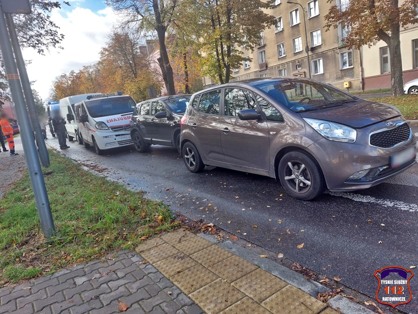26 października około godziny 12 na al. Bielskiej przed skrzyżowaniem z ul. Starokościelną doszło do dwóch zdarzeń drogowych, w których łącznie udział brały cztery pojazdy. W pierwszej kolizji brały udział dwa samochody osobowe i ambulans, a w drugiej ambulans i samochód dostawczy. Uczestnicy zdarzeń wezwali na miejsce patrol Policji. Prawy pas w kierunku browaru na czas działań został zablokowany. Z relacji uczestników zdarzenia wynika, że kierowcy samochodów Kia i Nissan zatrzymali się przed oznakowanym przejściu dla pieszych, wówczas w tył Nissana uderzył Opel, a Nissan uderzył w Kia. Chwilę później w tył Opla uderzył jeszcze dostawczy Peugeot. Na szczęście w wyniku tych zdarzeń nikt nie ucierpiał. Utrudnienia w ruchu w miejscu zdarzenia trwały około godziny. Policjanci KMP Tychy prowadzą dalsze postępowanie w tej sprawie.