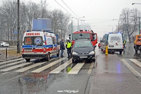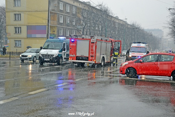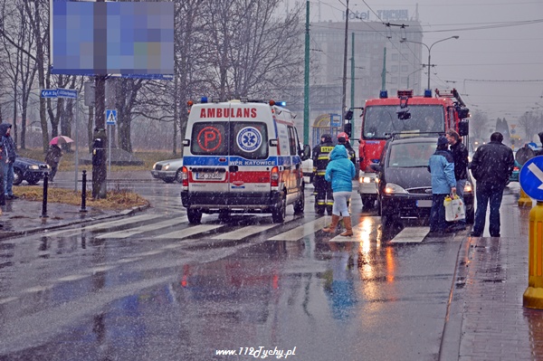 12 lutego około godziny 12.40 na oznakowanym przejściu dla pieszych na ul. Grota – Roweckiego doszło do zdarzenia. Przechodząca przez oznakowane przejście kobieta poślizgnęła się i upadła. Upadając uderzyła w przejeżdżający za jej plecami samochód osobowy. Na miejsce natychmiast zadysponowana została karetka pogotowia oraz patrol Policji. Po dotarciu na miejsce okazało się, że kobieta najprawdopodobniej doznała urazu biodra. W miejscu zdarzenia zatrzymali się także tyscy strażacy wracający z interwencji oraz funkcjonariusze ITD. Strażacy pomogli załodze pogotowia przetransportować poszkodowaną kobietę do karetki, a funkcjonariusze ITD kierowali uchem w miejscu zdarzenia. W czasie udzielania pomocy poszkodowanej kobiecie ruch ul. Grota – Roweckiego w kierunku ul. Niepodległości odbywał się wahadłowo. Po około 20 minutach strażacy i funkcjonariusze ITD odjechali do koszar. Poszkodowana kobieta została odwieziona do szpitala na dokładne badania. Dokładne okoliczności i przebieg zdarzenia ustalają funkcjonariusze WRD KMP w Tychach