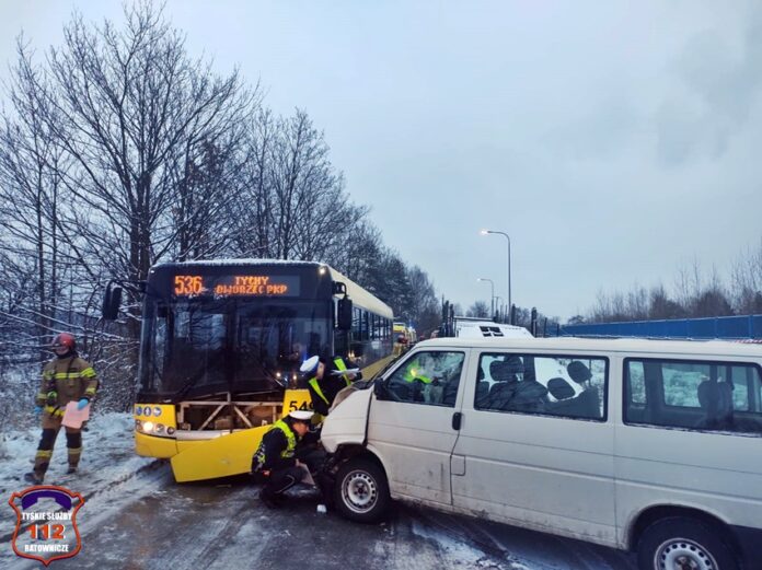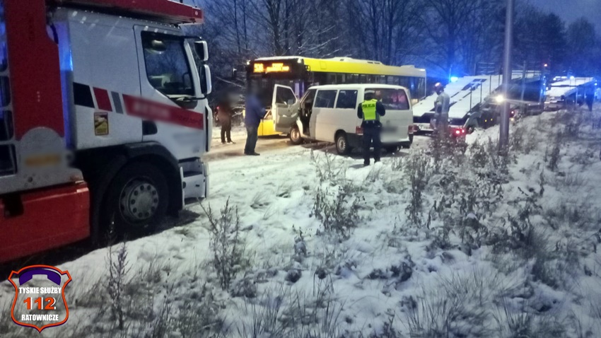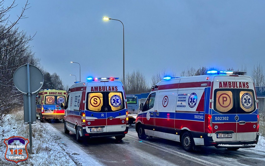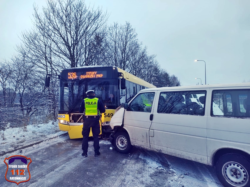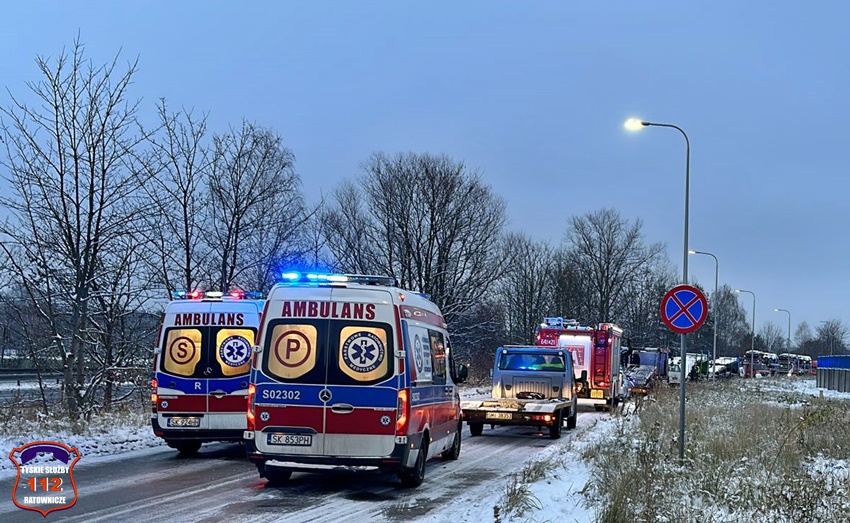 29 listopada około godziny 6:30 na drodze technicznej wzdłuż fabryki samochodów Stellantis ( rejon ul. Turyńskiej) doszło do zdarzenia drogowego z udziałem autobusu komunikacji miejskiej linii 536 oraz busa do przewozu osób. Zdarzenie zostało zgłoszone na numer alarmowy 112. Formatka o zdarzeniu trafiła do dyspozytora medycznego WPR Katowice oraz dyżurnych SK KM PSP Tychy i KMP Tychy. Na miejsce zdarzenia zadysponowane zostały: zastępy straży pożarnej z KM PSP Tychy, JRG Tychy, OSP Bieruń Stary, ZRM oraz patrole Policji z WRD KMP Tychy i WRD KPP Bieruń. W trakcie działań ruch na tej drodze został całkowicie zablokowany. Pojazdami biorącymi udział w zdarzeniu podróżowało łącznie 24 osoby (15 autobusem, a 9 busem). Wszystkie osoby podróżujące busem trafiły pod opiekę ratowników medycznych, a następnie zostały przewiezione do szpitali w Tychach, Mikołowie i Oświęcimiu. Na miejsce zdarzenia wezwany został policyjny technik kryminalistyki. Działania na miejscu trwały kilka godzin. Policjanci KMP Tychy prowadzą dalsze postępowanie w tej sprawie.