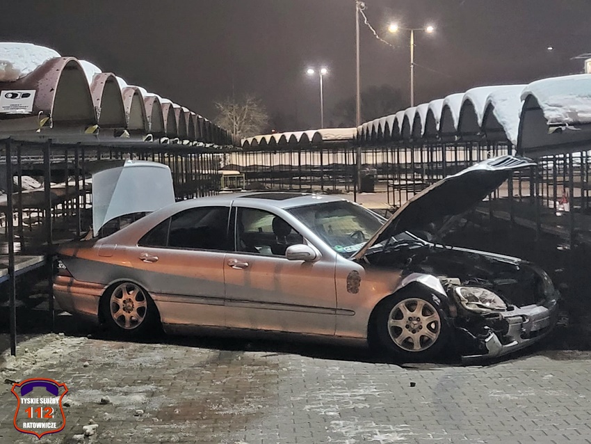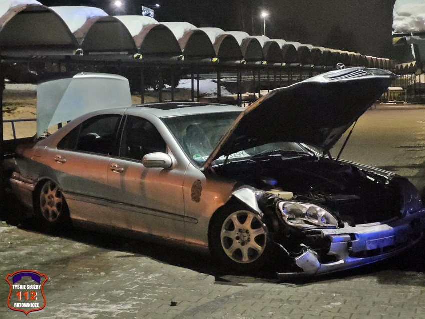 10 grudnia około godziny 21 dyżurny SK KM PSP Tychy otrzymał zgłoszenie od Policji z prośbą o neutralizację plamy płynów eksploatacyjnych z rozbitego pojazdu na terenie targowiska przy ul. Kapicy. Na miejsce zadysponowany został zastęp strażaków JRG Tychy. Jak się okazało kierujący osobowym Mercedesem wjechał na teren targowiska i staranował regały handlowe. W wyniku zdarzenia kierowca Mercedesa (obywatel Ukrainy) nie doznał obrażeń. Działania strażaków polegały na odłączeniu akumulatora w rozbitym pojeździe, zakręceniu butli LPG oraz sorpcji płynów eksploatacyjnych. Badanie alkomatem wykazało u niego 1,27 mg/l co daje ponad 2,6 promila. Mężczyzna został zatrzymany, a jego pojazd odholowany na policyjny parking. Policjanci KMP Tychy prowadzą dalsze postępowanie w tej sprawie.