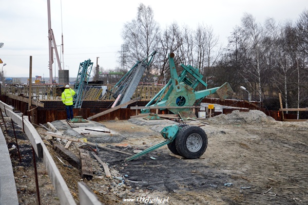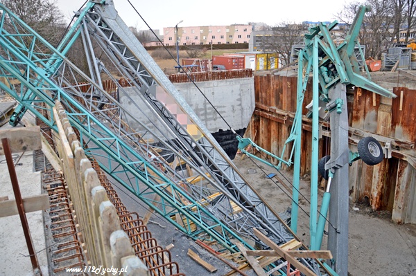 14 lutego około godziny 15.10 do dyżurnego tyskiej Policji wpłynęło zgłoszenie z KWP w Katowicach o wywróceniu się dźwigu na budowie DK1. Na miejsce wysłany został jeden patrol WRD z KMP Tychy celem sprawdzenia zgłoszenia. Policjanci zlokalizowali dźwig w okolicy jednej ze stacji paliw. Okazało się, że dźwig wpadł do dziury przy budowanym moście nad torami kolejowymi. Nikomu nic się nie stało. W związku z tym, że zdarzenie miało miejsce na terenie budowy Policjanci odstąpili od czynności. Przyczyny i okoliczności tego zdarzenia wyjaśnia firma budowlana, do której należał sprzęt.