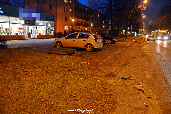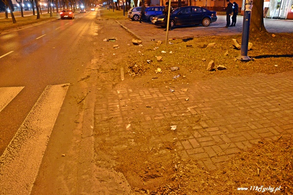 14 lutego około godziny 17.10 do dyżurnego tyskiej Policji wpłynęło zgłoszenie, że na Alei Niepodległości doszło do zdarzenia drogowego. Na miejsce wysłany został pieszy patrol będący w pobliżu oraz patrol WRD. Po dotarciu na miejsce funkcjonariuszy prewencji okazało się, że jadący Aleją Niepodległości kierujący samochodem BMW młody mężczyzna utracił panowanie nad swoim pojazdem, wpadł w poślizg i prawym przednim bokiem uderzył w betonowy kosz na śmieci stojący na chodniku przy oznakowanym przejściu dla pieszych. Całe zdarzenie widziała przechodząca w pobliżu kobieta. Siła uderzenia była tak duża, że betonowy kosz przestał praktycznie istnieć. Kilka większych części wylądowało na trawniku, a cała reszta kamieni rozsypała się na prawym pasie. Na prośbę będących na miejscu funkcjonariuszy prawy pas został wyłączony z ruchu w miejscu zdarzenia. Policjanci WRD KMP Tychy po przybyciu na miejsce wezwali firmę sprzątającą, która zajęła się usunięciem elementów śmietnika oraz posprzątała pas jezdni. Przez około 30 minut były utrudnienia w ruchu w tym miejscu. Kierujący samochodem BMW był trzeźwy. Dalsze czynności prowadzą funkcjonariusze WRD KMP Tychy.