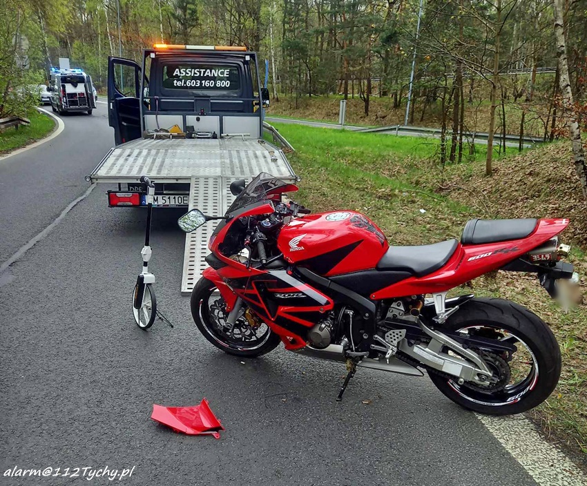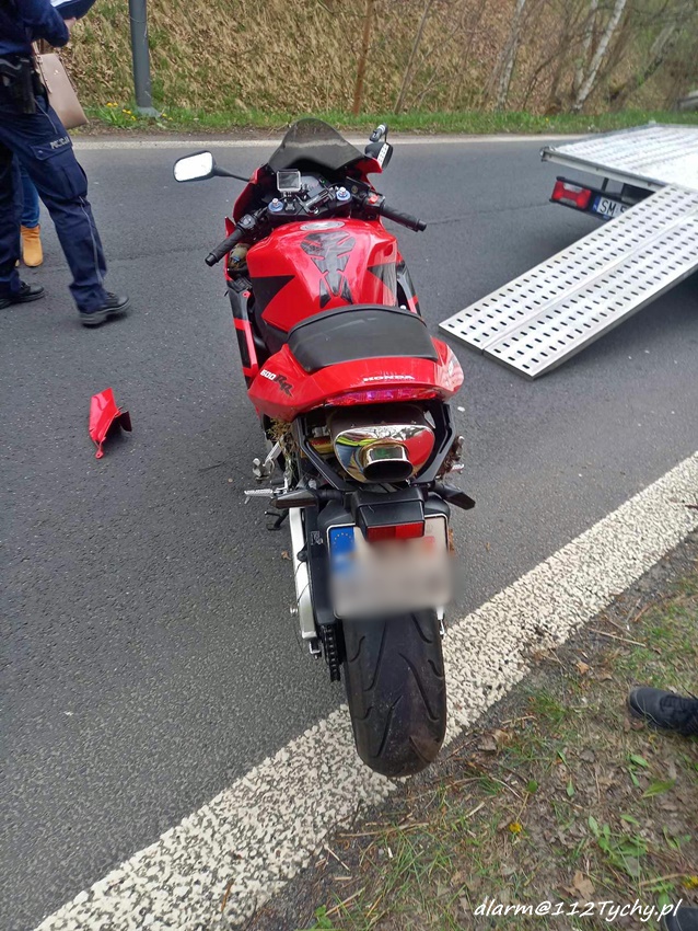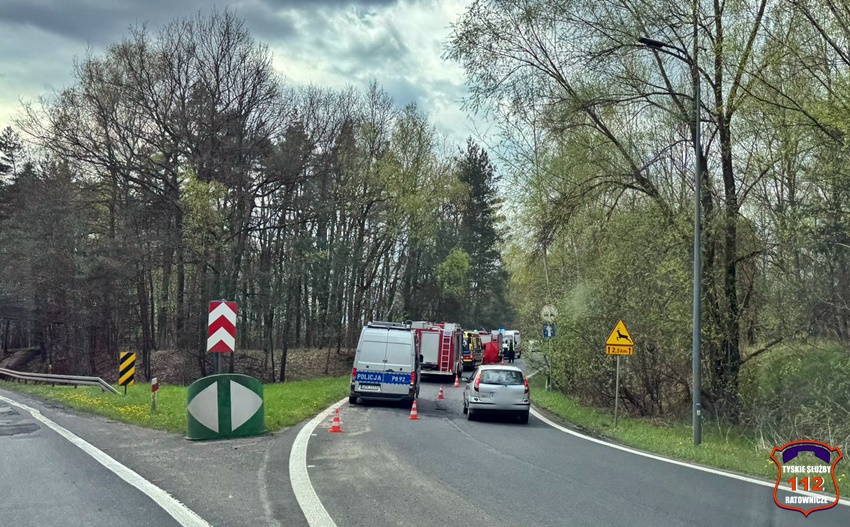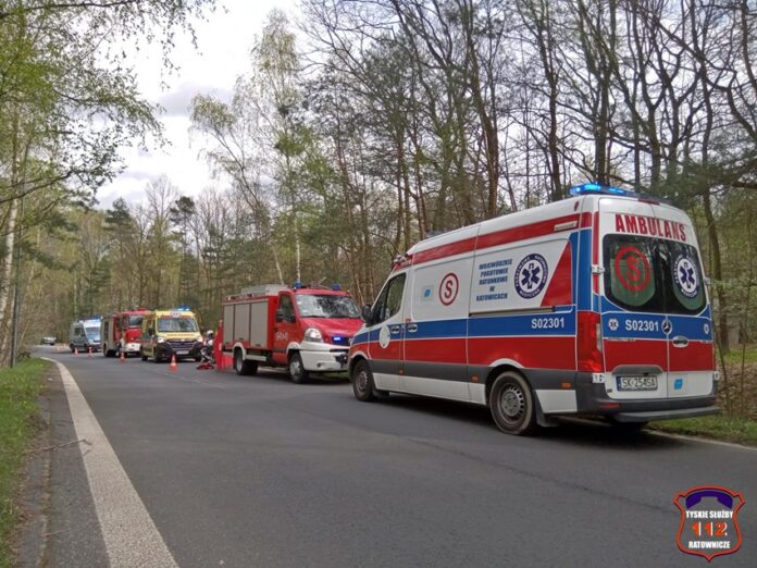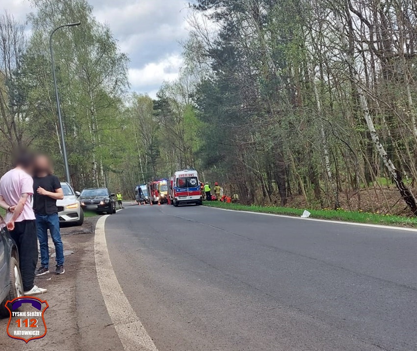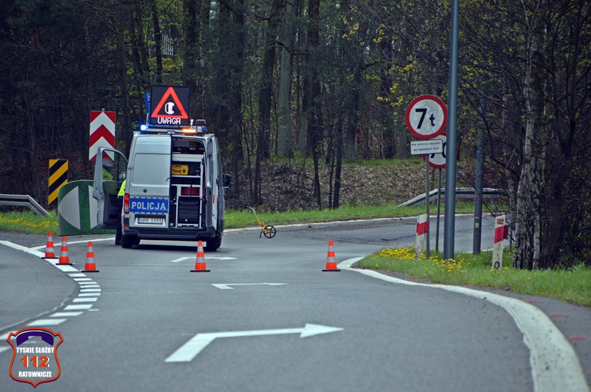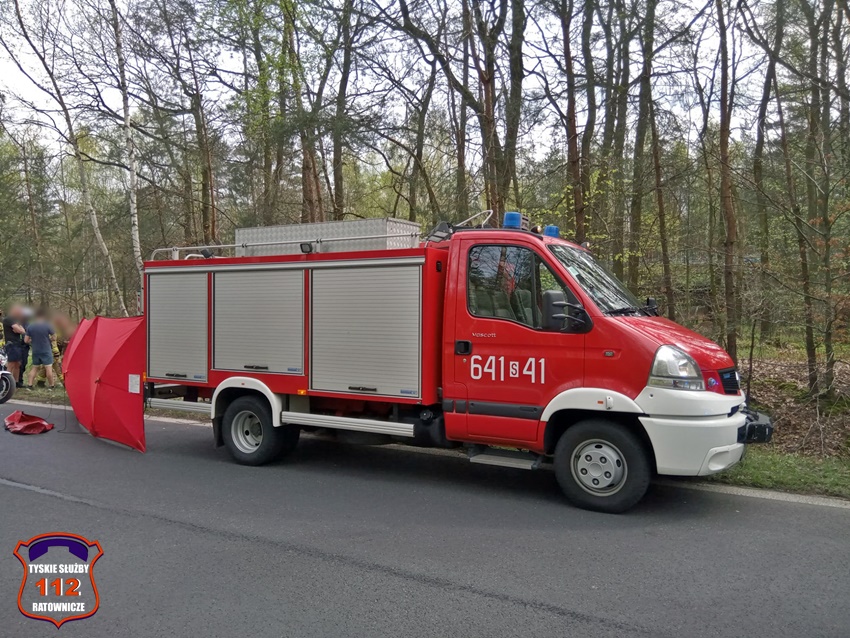 6 kwietnia około godziny 12:20 dyżurny SK KM PSP Tychy otrzymał zgłoszenie o wypadku z udziałem motocyklisty w rejonie zjazdu z trasy DK 86 na ul. Katowicką. Ze zgłoszenia wynikało, że u mężczyzny doszło do zatrzymania krążenia. Na miejsce zdarzenia zadysponowane zostały: zastępy strażaków JRG Tychy, ZRM oraz Policja. Przed przybyciem służb z pomocą poszkodowanemu motocykliście pospieszyli świadkowie zdarzenia. Niestety pomimo wdrożenia medycznych czynności ratunkowych nie udało się przywrócić funkcji życiowych 43 – letniemu mężczyźnie (mieszkaniec Tychów). Na miejsce wezwany został policyjny technik kryminalistyki oraz prokurator. Na czas działań droga została zablokowana. Ze wstępnych ustaleń pracujących na miejscu Policjantów jak i relacji świadków zdarzenia wynika, że kierujący motocyklem marki Honda mężczyzna wyprzedzał ciąg pojazdów i „złapał” pobocze, po czym utracił panowanie nad jednośladem i wpadł do przydrożnego rowu i zagajnika. Policjanci KMP Tychy prowadzą postępowanie w tej sprawie.