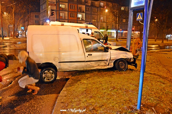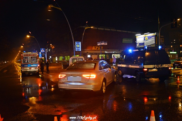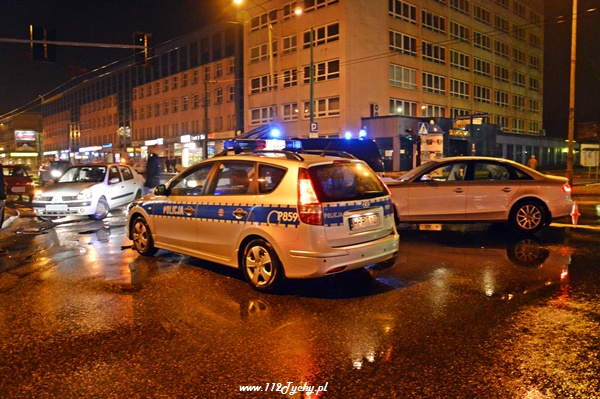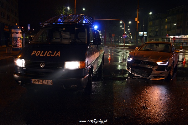 28 lutego około godziny 20.45 do dyżurnego tyskiej Policji wpłynęło zgłoszenie o zderzeniu dwóch samochodów osobowych na skrzyżowaniu Niepodległości z Grota Roweckiego. Na miejsce wysłany został patrol Policji oraz karetka pogotowia. Po dotarciu na miejsce okazało się, ze kierujący samochodem Ford Courier jadąc ulicą Grota Roweckiego wymusił pierwszeństwo na jadącym al. Niepodległości samochodzie Audi. Miejsce zdarzenia zastało zabezpieczone przez ekipę 112Tychy i patrol prewencji. Osoba kierująca Fordem została zabrana do szpitala na dokładniejsze badania (doznała urazu głowy). Nikomu z samochodu Audi nic się nie stało. Na miejsce dojechał patrol WRD, który przejął miejsce zdarzenia. Po wykonaniu dokumentacji zapadła decyzja o usunięciu uszkodzonych pojazdów ze skrzyżowania. Utrudnienia trwały około 30 minut. Policjanci wyjaśniają zaistniałe zdarzenie.