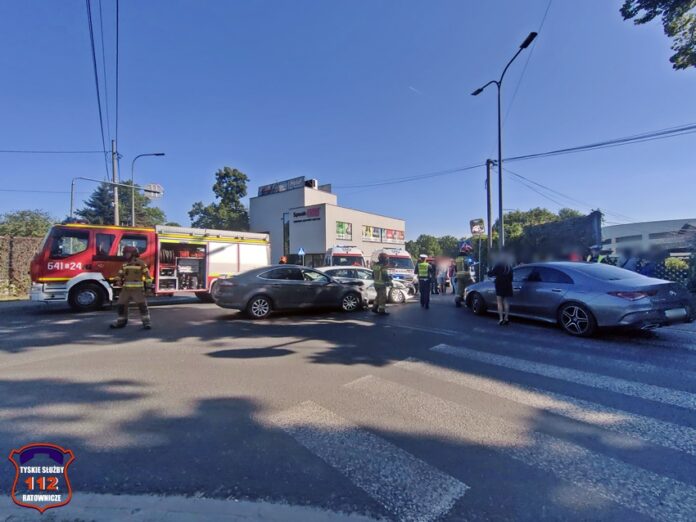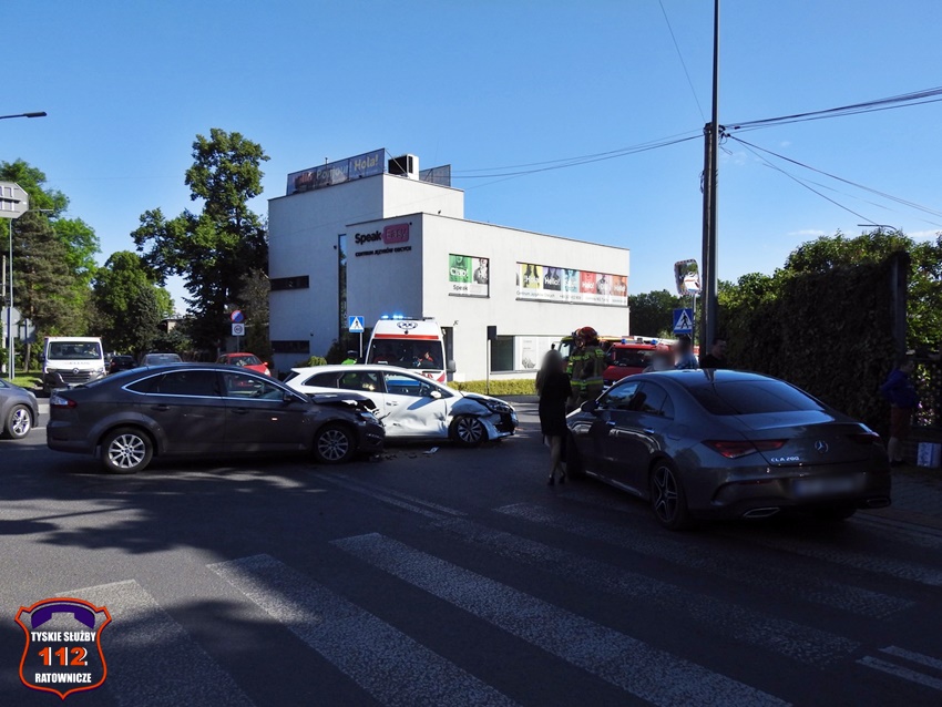 15 maja około godziny 16:30 na skrzyżowaniu ul. Asnyka – Damrota doszło do zdarzenia drogowego, w którym brały udział trzy samochody osobowe. W zdarzeniu brały udział: Kia, Ford oraz Mercedes. Na miejsce zdarzenia zadysponowane zostały: ZRM, zastępy JRG Tychy oraz Policja. Na czas działań ruch został zablokowany. W wyniku zdarzenia poszkodowana została jedna osoba (kobieta w ciąży), która po zaopatrzeniu przez ratowników medycznych została przewieziona do szpitala na dokładne badania. Pojazdami biorącymi udział w zdarzeniu podróżowały również dzieci ale nie doznały one obrażeń. Ze wstępnych ustaleń pracujących na miejscu Policjantów jak i relacji uczestników zdarzenia wynika, że sprawcą zdarzenia jest kierująca Kią, która jadąc ul. Damrota (w kierunku ul. Dworcowej) nie zachowała należytej ostrożności i wjechała wprost pod jadącego w kierunku dworca PKP Forda. Ford po uderzeniu w Kia uderzył jeszcze w oczekującego na ul. Damrota Mercedesa. Po wykonaniu wstępnych czynności w miejscu zdarzenia wprowadzony został ruch wahadłowy. Policjanci KMP Tychy prowadzą postępowanie w sprawie tego zdarzenia.
