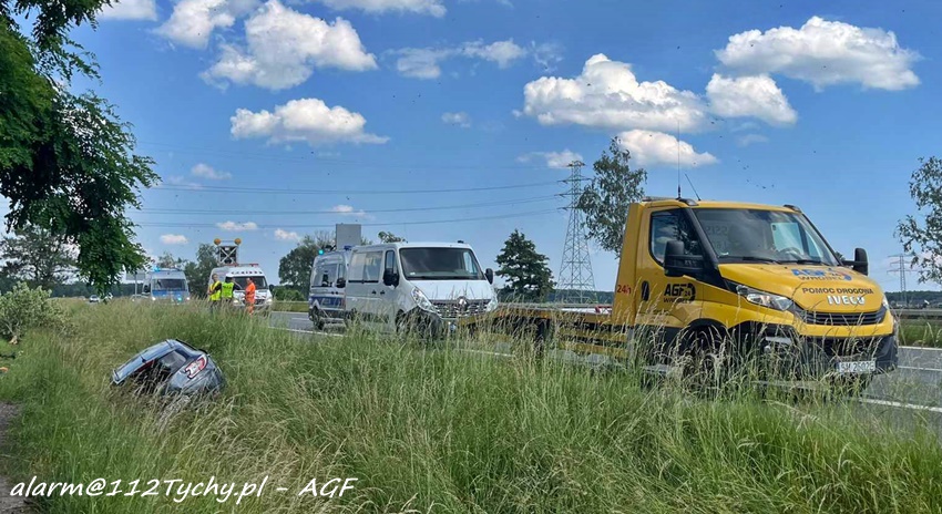 8 czerwca około godziny 11:55 dyżurni SK KM PSP Tychy i KMP Tychy otrzymali zgłoszenie o dachowaniu samochodu osobowego na 563km trasy S1 w kierunku Tychów. Na miejsce zgłoszenia natychmiast zadysponowane zostały: ZRM, zastępy strażaków JRG Tychy oraz Policja. Na czas działań prawy pas w kierunku Tychów został wyłączony z ruchu. Przed przybyciem służb ratunkowych na miejsce z pomocą poszkodowanym pospieszyli świadkowie zdarzenia. Trzy osoby podróżujące osobowym Renault trafiły pod opiekę ratowników medycznych. Mężczyzna został przewieziony do szpitala Megrez w Tychach, natomiast kobieta z córeczką trafiły do szpitala w Katowicach Ligocie. Działania na miejscu trwały blisko trzy godziny. Dodatkowo miejsce zdarzenia zabezpieczała służba drogowa. Policjanci KMP Tychy ustalają dokładny przebieg i okoliczności tego zdarzenia.