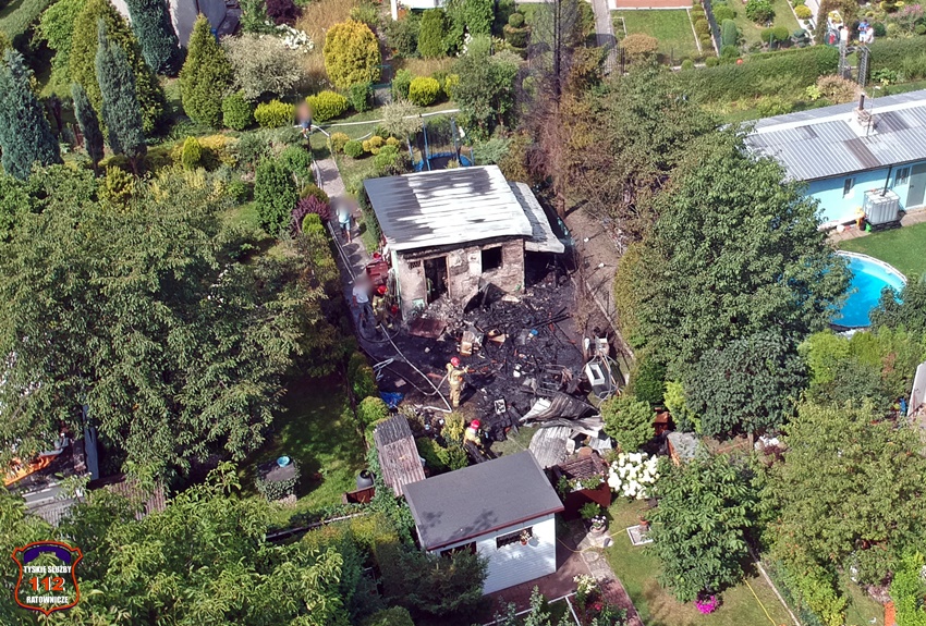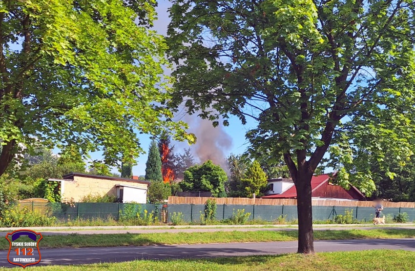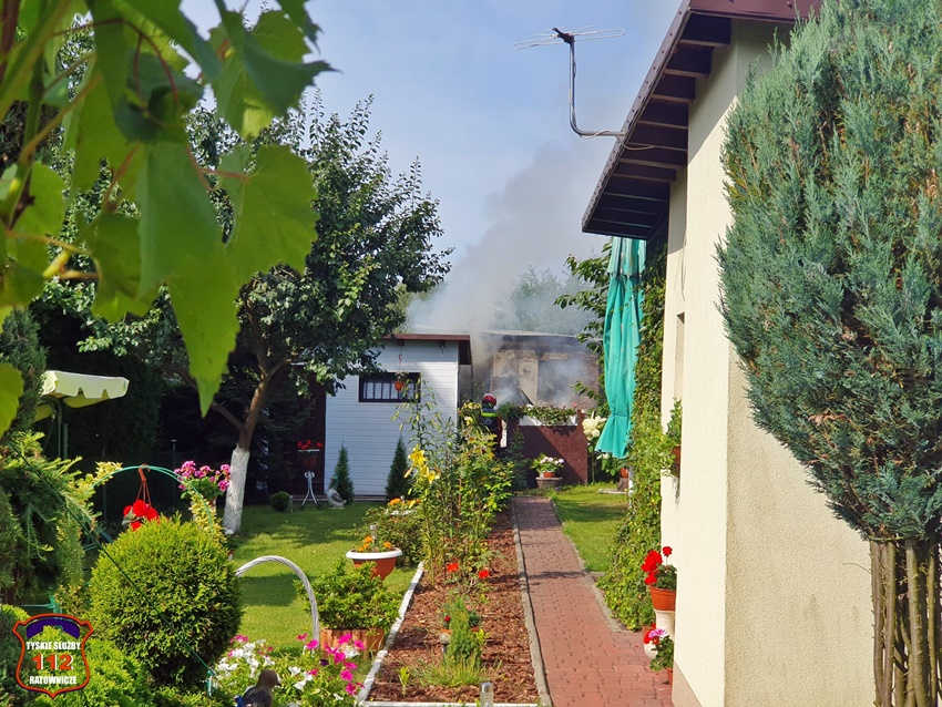 6 lipca około godziny 8:55 dyżurny SK KM PSP Tychy otrzymał zgłoszenie o pożarze altany działkowej na Rodzinnych Ogródkach Działkowych Oskard przy ul. Myśliwskiej. Na miejsce zgłoszenia zadysponowane zostały dwa zastępy strażaków JRG Tychy oraz Policja. Po przybyciu na miejsce zgłoszenie zostało potwierdzone. Jak się okazało w wyniku pożaru poszkodowana została jedna osoba (mężczyzna), który próbował gasić pożar. Mężczyzna doznał poparzeń klatki piersiowej oraz rąk. Na miejsce wezwany został ZRM, który po zaopatrzeniu pacjenta przewiózł go do szpitala. Strażacy szybko opanowali i ugasili pożar. Po ugaszeniu pożaru konieczna była częściowa rozbiórka spalonych elementów oraz opróżnienie altany i przelanie pogorzeliska. Działania na miejscu trwały około dwóch godzin. Trwa ustalanie przyczyn i okoliczności pożaru.