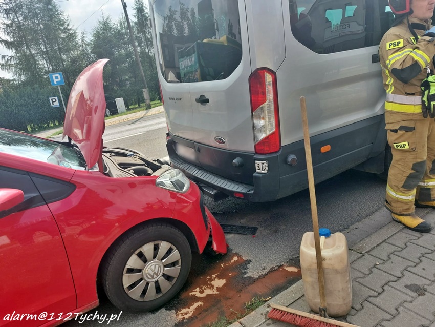 7 lipca około godziny 15 na ul. Mikołowskiej doszło do zdarzenia drogowego z udziałem trzech pojazdów. W tył VW uderzył Nissan, a VW uderzył w poprzedzającego Forda. Na miejsce zdarzenia zadysponowane zostały: ZRM, Policja oraz zastęp strażaków JRG Tychy. W trakcie działań ruch w kierunku Mikołowa odbywał się z utrudnieniami. Na szczęście w wyniku zdarzenia nikt nie ucierpiał. Pracujący na miejscu Policjanci ustalili, że sprawcą zdarzenia jest kierowca Nissana, który nie zachował należytej ostrożności i odległości od poprzedzającego pojazdu. Działania na miejscu trwały około godziny. Policjanci KMP Tychy prowadzą dalsze postępowanie w tej sprawie.