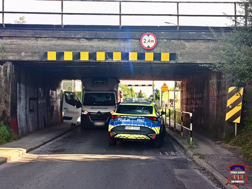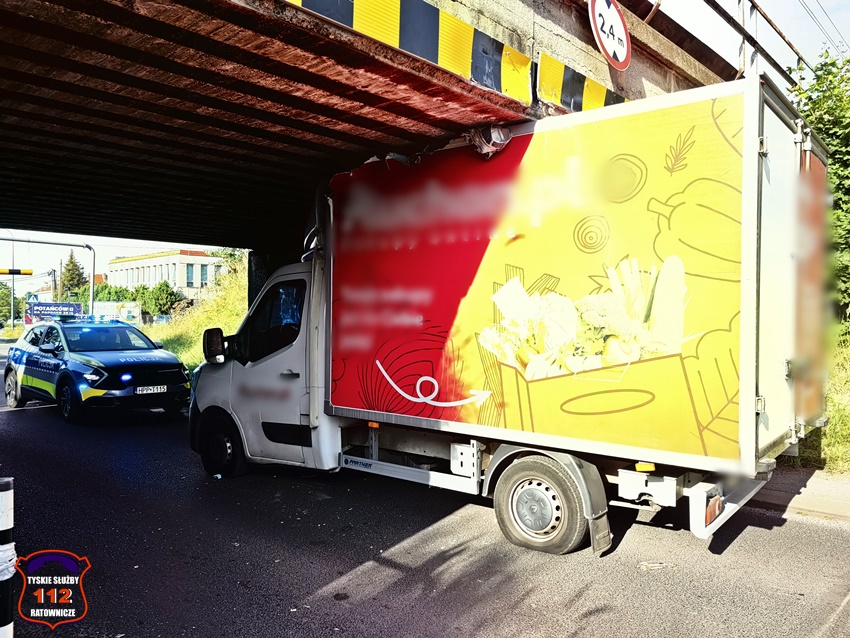 26 lipca około godziny 17:25 na ul. Glinczańskiej doszło do zdarzenia drogowego. Kierujący samochodem dostawczym marki Renault mężczyzna (22 lata) nie zastosował się do znaków B-16 (2,4m) i uderzył w bramownice, a następnie zaklinował się pod wiaduktem. Na miejsce zdarzenia zadysponowane zostały: patrol Policji oraz zastęp strażaków JRG Tychy. W trakcie działań ruch w miejscu zdarzenia był częściowo zablokowany, a następnie odbywał się wahadłowo. Młody kierowca oraz jeden ze świadków zdarzenia spuścili powietrze z kół dostawczaka co pozwoliło na uwolnienie pojazdu z potrzasku. Pojazd został usunięty na jedną z pobliskich dróg dojazdowych, gdzie został przeładowany towar (zakupy on-line), a po zabezpieczeniu pojazdu został od odholowany przez pomoc drogową. Kierowca dostawczaka został ukarany mandatem karnym. Utrudnienia w ruchu trwały około godziny.