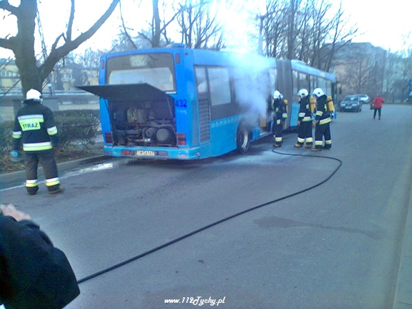 Pożar autobusu w Lędzinach