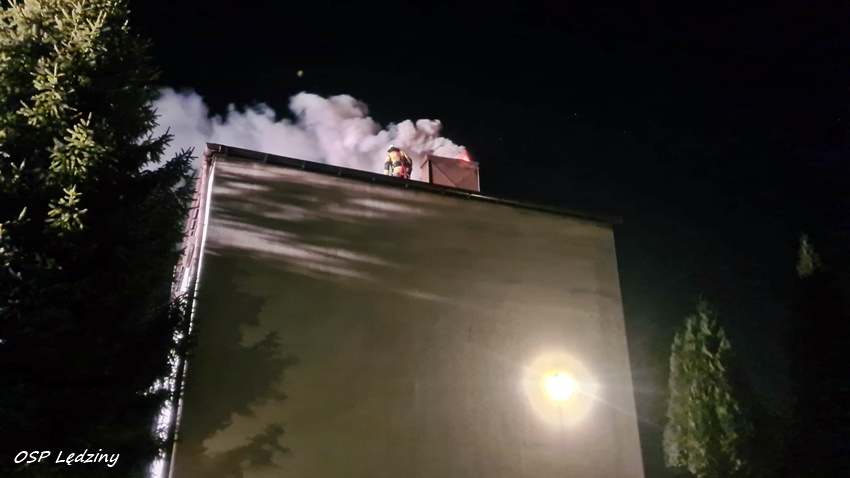 30 września około godziny 20:20 dyżurny SK KM PSP Tychy otrzymał zgłoszenie o pożarze sadzy w przewodzie kominowym jednego z domów przy ul. Panoramy w Lędzinach. Na miejsce zgłoszenia zadysponowani zostali strażacy ochotnicy z jednostki OSP Lędziny. Po przybyciu na miejsce zgłoszenie zostało potwierdzone. Strażacy wygasili pieca następnie przystąpili do gaszenia palących się sadz i czyszczeniu komina.