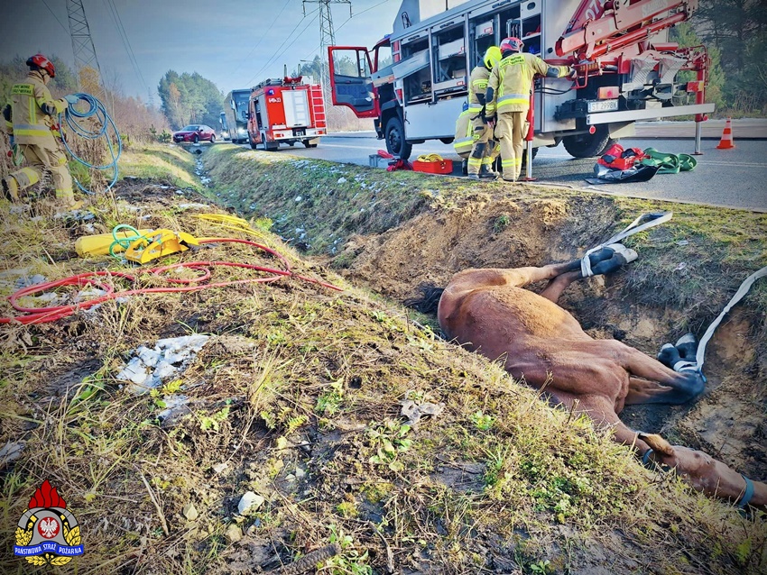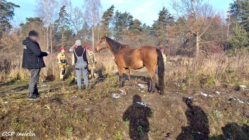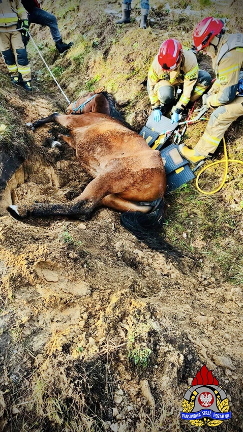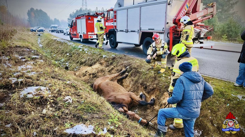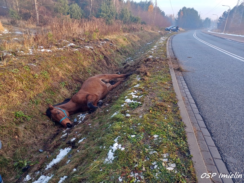 25 listopada około godziny 8:10 dyżurny SK KM PSP Tychy otrzymał nietypowe zgłoszenie. Z zgłoszenia wynikało, że w rowie przy ul. Kolejowej w Imielinie leży koń, który uciekł z pobliskiej stadniny. Na miejsce natychmiast zadysponowane zostały zastępy strażaków OSP Imielin, JRG Tychy oraz Policja. Po przybyciu na miejsce zgłoszenie potwierdziło się. W działania zaangażowani zostali również lekarze weterynarii. Weterynarze wskazali strażakom najbezpieczniejszy sposób na podniesienie zwierzęcia. Wstępnie zwierzę zostało podniesione przy użyciu poduszek pneumatycznych (wysokiego ciśnienia – niskiego podnoszenia), a po spętaniu kopyt i założeniu uprzęży koń został wyciągnięty z rowu przy użyciu hydraulicznego dźwigu samochodowego zabudowanego na samochodzie ratownictwa technicznego z JRG Tychy. Na szczęście koń wyszedł z tego zdarzenia bez szwanku i po postawieniu na „nogi” został odprowadzony przez właściciela do stajni.
