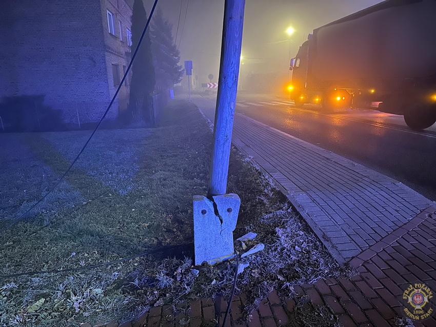 5 grudnia około godziny 22:40 na ul. Oświęcimskiej w Bieruniu doszło do zdarzenia drogowego. Kierujący ciągnikiem siodłowym marki Volvo z naczepą zahaczył o linie telefoniczne i złamał trzy słupy. Na miejsce zdarzenia zadysponowane zostały: zastęp strażaków OSP Bieruń Stary oraz Policja. Jak się okazało kierowca ciężarówki zaufał nawigacji samochodowej i polnymi drogami przejechał od ul. Turyńskiej do ul. Oświęcimskiej. Policjanci KPP Bieruń prowadzą dalsze postępowanie w tej sprawie.