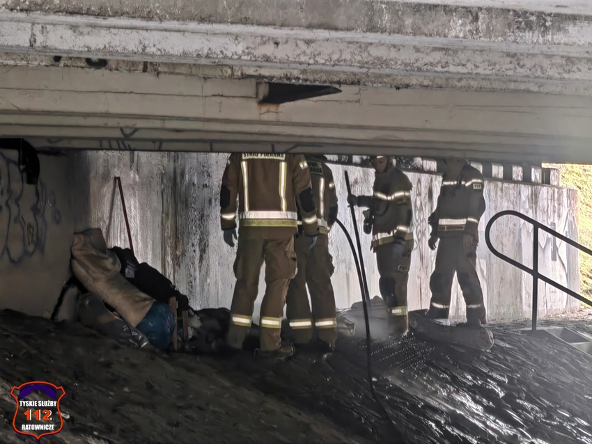 19 grudnia około godziny 12:30 dyżurny SK KM PSP Tychy otrzymał zgłoszenie o dymie wydobywającym się spod wiaduktu przy stacji kolejowej Tychy Bielska. Na miejsce zgłoszenia zadysponowany został zastęp strażaków JRG Tychy oraz patrol Policji. Po przybyciu na miejsce okazało się, że pożarem objęte są śmieci i materace składowane przez osoby bezdomne pod wiaduktem. Strażacy podali jeden prąd wody w natarciu na palące się elementy. Jak się okazało osobą zgłaszającą, która zareagowała na dym wydobywający się spod wiaduktu był 12 – letni Adam, mieszkaniec Tychów. Młodemu tyszaninowi gratulujemy postawy. Działania na miejscu trwały około trzydziestu minut.