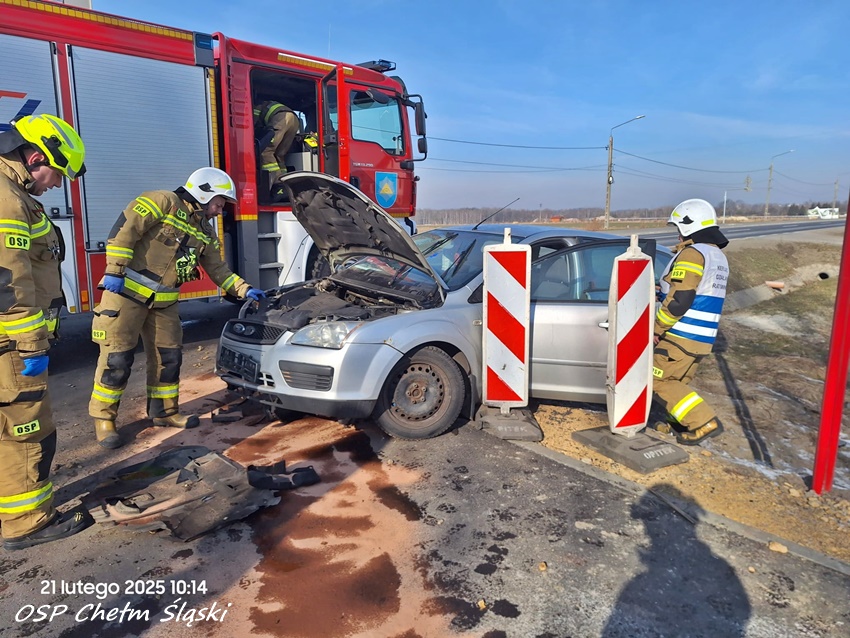 21 lutego około godziny 10 na ul. Chełmskiej (pomiędzy ul. Podłuże, a ul. Dębową) w Chełmie Śląskim doszło do zdarzenia drogowego, w którym brały udział dwa pojazdy: osobowy Ford oraz ciągnik siodłowy Scania z naczepą typu cysterna. Na szczęście w wyniku zdarzenia nikt nie ucierpiał. Na miejsce zdarzenia zadysponowany został patrol bieruńskiej Policji oraz zastęp strażaków OSP Chełm Śląski. Z ustaleń pracujących na miejscu Policjantów jak i relacji uczestników zdarzenia wynika, że kierująca Fordem kobieta rozpoczęła manewr wyprzedzania jadącej przed nią maszyny budowlanej nie upewniając się czy może manewr wykonać. Uderzona w bok osobówka wypadł z drogi. Jak się okazało kierujaca Fordem nie posiadała uprawnień do kierowania pojazdami mechanicznymi. Policjanci KPP Bieruń prowadzą dalsze postępowanie w tej sprawie.