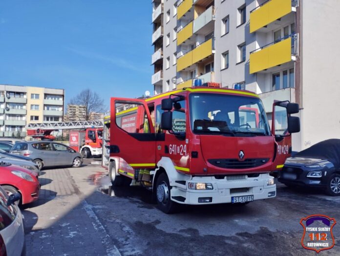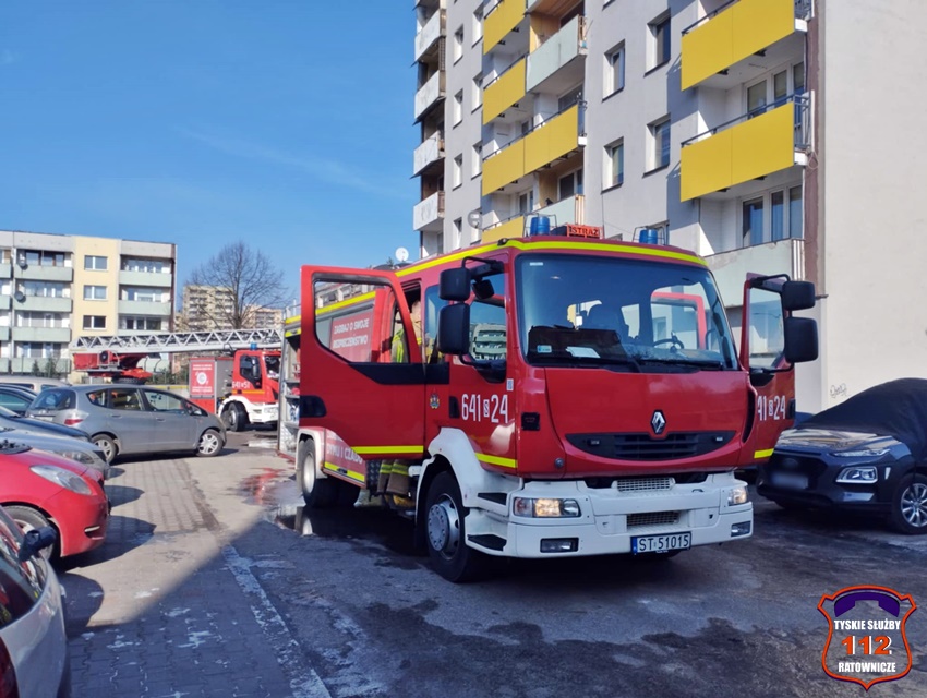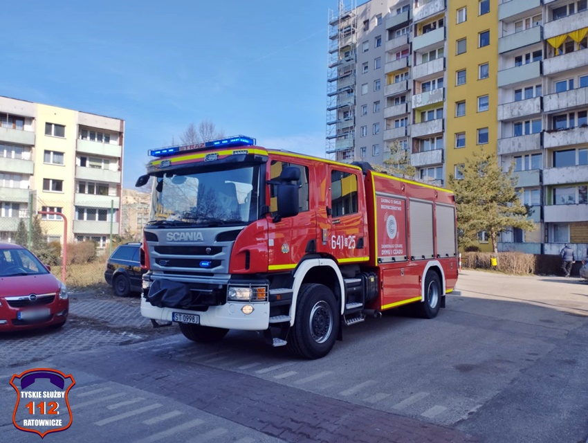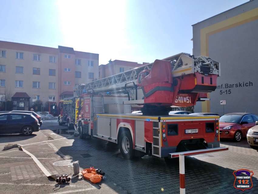 21 lutego około godziny 13:10 dyżurny SK KM PSP Tychy otrzymał zgłoszenie o zadymieniu w budynku wielorodzinnym przy ul. Konfederatów Barskich. Na miejsce zgłoszenia zadysponowane zostały zastępy strażaków JRG Tychy oraz patrol Policji. Po przybyciu na miejsce i rozpoznaniu sytuacji okazało się, że doszło do pożaru plastykowych drzwiczek skrzynki rewizyjnej. Przy użyciu hydronetki pożar został ugaszony. O zdarzeniu poinformowany został administrator budynku. Strażacy oddymili i przewietrzyli klatkę schodową i po około trzydziestu minutach działania zostały zakończone.