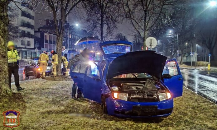 23 lutego przed godziną 18 na skrzyżowaniu al. Bielskiej z ul. Cichą doszło do zdarzenia drogowego z udziałem dwóch samochodów osobowych. W zdarzeniu brały udział pojazdy marki Skoda oraz Honda. Na miejsce zdarzenia zadysponowany został patrol Policji oraz zastęp strażaków JRG Tychy. W trakcie działań lewy pas w kierunku ronda Polonia był zablokowany. W trakcie czynności jedna osoba podróżująca Skodą zgłosiła złe samopoczucie i na miejsce wezwani zostali ratownicy medyczni WPR Katowice. Z relacji uczestników zdarzenia jak i ustaleń pracujących na miejscu policjantów wynika, że sprawcą zdarzenia jest kierowca Hondy, który wyjeżdżając z ul. Cichej nie zachował należytej ostrożności i zajechał drogę jadącemu w kierunku ronda Polonia kierowcy Skody doprowadzając do zderzenia. W wyniku zderzenia kierowca Hondy utracił panowanie nad pojazdem i uderzył w przydrożne drzewo. Uszkodzone pojazdy zostały zepchnięte na pas zielenie, a następnie odholowane przez pomoc drogową. Sprawca zdarzenia został ukarany mandatem karnym. Utrudnienia w ruchu trwały około godziny.