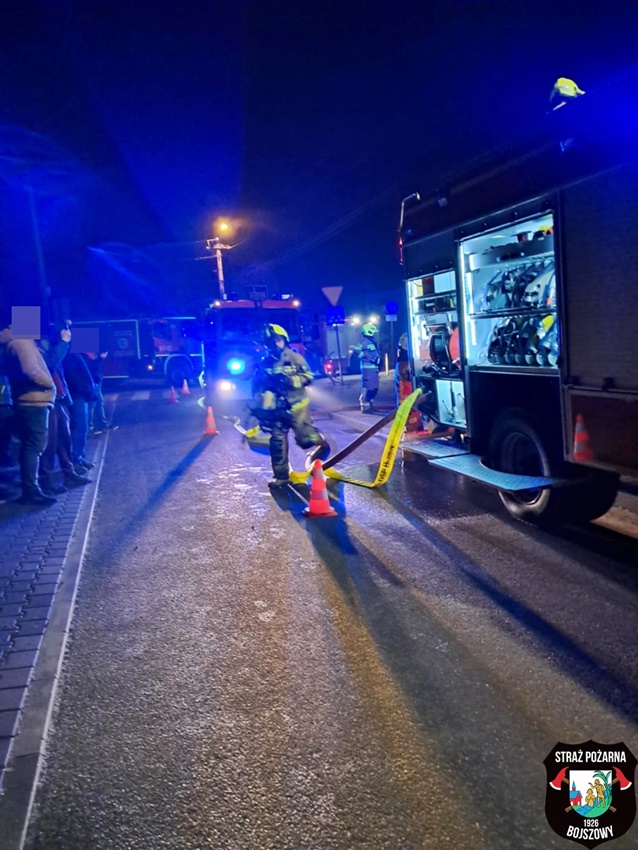 24 lutego około godziny 19:35 dyżurny SK KM PSP Tychy otrzymał zgłoszenie o pożarze domku gospodarczego i zagrożonym domu jednorodzinnym na ul. Spacerowej w Bojszowach. Na miejsce natychmiast zadysponowane zostały zastępy strażaków OSP Bojszowy, OSP Bojszowy Nowe, JRG Tychy oraz patrol Policji. Po przybyciu pierwszych zastępów podane zostały dwa prądy wody na palący się domek gospodarczy i elewację domu. W związku z silnym zadymieniem strażacy działali w aparatach ochrony układu oddechowego. Tylko dzięki szybkiemu zauważeniu pożaru i podjętych działaniach udało się uratować mienie znacznej wartości. Po ugaszeniu pożaru pogorzelisko zostało dodatkowo sprawdzone przy użyciu kamery termowizyjnej. Działania na miejscu trwały ponad godzinę. Trwa ustalanie przyczyn i okoliczności powstania pożaru.