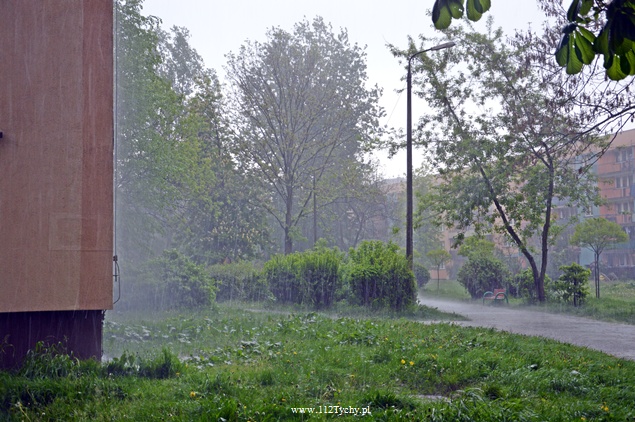 2 maja około godziny 15 nad Tychami rozległy się grzmoty. Z chmur lunął ulewny deszcz, a również gard. Nie było to gradobicie jak niecały rok temu ale jednak.W niektórych miejscach studzienki deszczowe nie były w stanie odbierać tej ilości wody. Na ul. Grota – Roweckiego piorun uderzył w trakcje trolejbusową. Co spowodowało chwilowe wstrzymanie ruchu trolejbusów. Zerwana został jedna z lin nośnych. Na miejsce wezwany został zastęp z JRG Tychy (GBA) i pogotowie techniczne z TLT. Po kilkunastu minutach usterka została usunięta. Zastęp powrócił do koszar. Obyło się na szczęście bez większych zniszczeń i uszkodzeń.