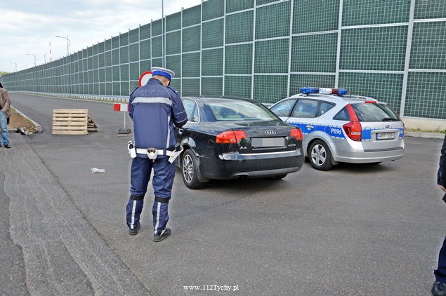 4 maja około godziny 16.10 do dyżurnego tyskiej Policji wpłynęło zgłoszenie o kolizji dwóch samochodów na DK1 na wysokości Paprocan. Sprawca kolizji starał się za wszelką cenę odjechać. Próbowali mu to utrudnić kierujący będący świadkami zdarzenia. Udało się go zmusić do zjazdu na jedną z pobliskich stacji paliw gdzie został zablokowany mu wyjazd. Na miejsce udały się w sumie cztery patrole WRD Policji (dwa radiowozy i dwa motocykle).Po dotarciu na miejsce kierujący Fordem (sprawca kolizji) zaczął się tłumaczyć przybyłym policjantom. Jednak poszkodowana z samochodu Audi, jak i inni świadkowie tego zdarzenia nie potwierdzili jego wersji wydarzeń. Kierujący Fordem został poinformowany, że za swoje wyczyny zostają mu zatrzymane uprawnienia do kierowania. Dalsze wyjaśnienia i czynności prowadzą Policjanci z tyskiej KMP.