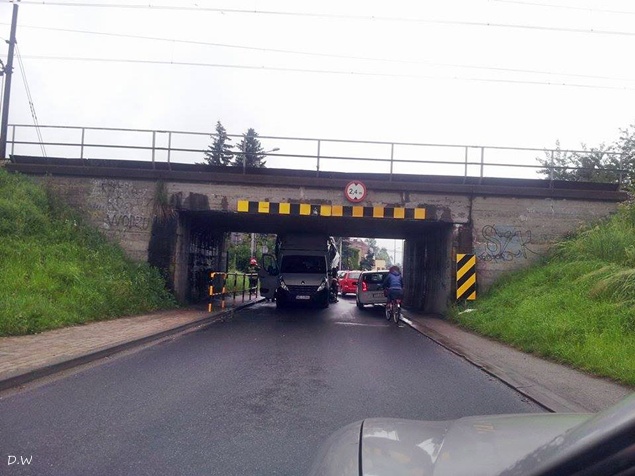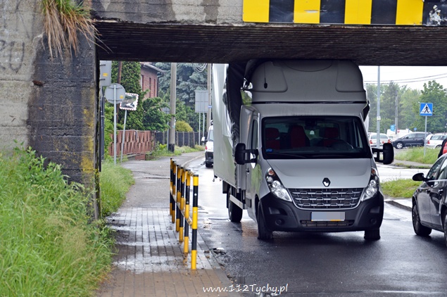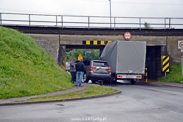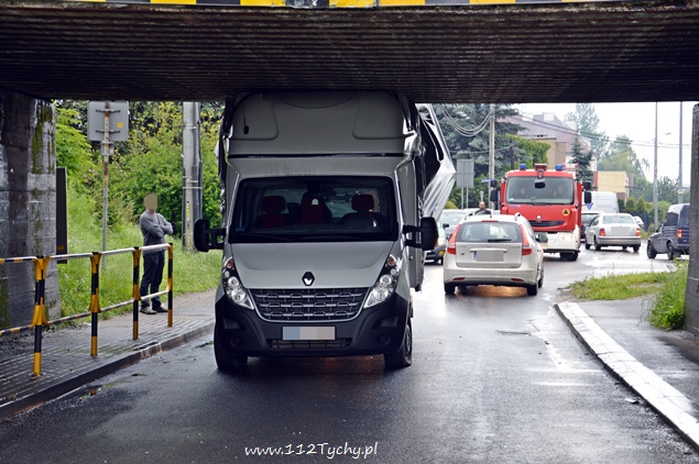 3 czerwca około godziny 9.15 na ul. Glińczańskiej doszło do zdarzenia drogowego z udziałem samochodu dostawczego Renault Master i wiaduktu. Kierujący samochodem dostawczym nie zastosował się do znaku drogowego B – 16 – zakaz wjazdu pojazdów o wysokości ponad… w tym przypadku 2,4m i wjechał pod wiadukt doprowadzając do uszkodzeń swój pojazd i blokując ruch w obu kierunkach. Kierujący sam próbował oswobodzić siebie i swój pojazd z opresji upuszczając powietrze z przednich kół jednak bezskutecznie. Na miejsce zdarzenia przyjechał patrol tyskiej Policji i jeden zastęp z JRG Tychy (GBA). Dopiero przy pomocy tyskich strażaków i ich sprzętu udało się pojazd oswobodzić i udrożnić drogę. Kierujący samochodem dostawczym został ukarany mandatem za swoją nieuwagę. Utrudnienia trwały około godziny.
