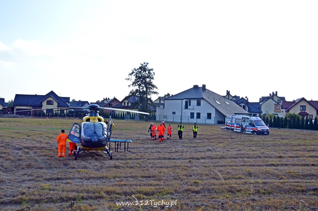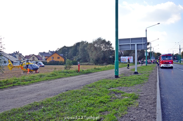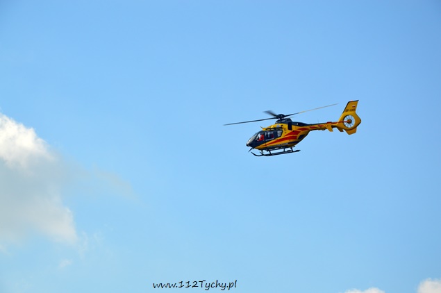 12 października około godziny 13.30 dyżurny tyskiej Policji otrzymał zgłoszenie, że na al. Piłsudskiego na wysokości skrzyżowania z ul. Jordana na środku jezdni leży mężczyzna. Na miejsce skierowany został patrol prewencji celem potwierdzenia zgłoszenia, a dodatkowo powiadomione został pogotowie ratunkowe. Po dotarciu na miejsce zgłoszenie zostało potwierdzone. Z informacji uzyskanych od poszkodowanego mężczyzny miał on zostać potrącony przez przejeżdżający samochód. Niestety kierujący samochodem nie zatrzymał się i odjechał z miejsca zdarzenia. Poszkodowany mężczyzna został zaopatrzony na miejscu, a jego obrażenia okazały się na tyle poważne, że potrzebna była pomoc Lotniczego Pogotowia Ratunkowego. Mężczyzna doznał urazu kręgosłupa. Ze względu na wezwanie LPR na miejsce zadysponowane zostały dwa zastępy z JRG Tychy (GBA, SCRt) celem zabezpieczenia lądowiska. Po kilkunastu minutach na miejscu wylądował śmigłowiec LPR – Ratownik 6. Mężczyzna został przetransportowany do szpitala w Sosnowcu. W trakcie lądowania i startu śmigłowca LPR ruch na al. Piłsudskiego był wstrzymany. Tyscy Policjanci prowadzą dochodzenie w tej sprawie, a dodatkowo poszukiwany jest czerwony samochód i jego kierujący, który najprawdopodobniej był sprawcą tego zdarzenia.