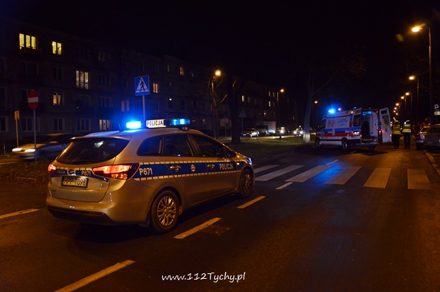 11 grudnia około godziny 18.50 dyżurny tyskiej Policji otrzymał zgłoszenie o potrąceniu pieszej na al. Bielskiej w okolicy skrzyżowania z ul. Czarnieckiego. Na miejsce skierowany został patrol Policji i ZRM. Na zdarzenie najechała lekarka, która wspierana przez świadków zdarzenia i przybyłych policjantów udzielała pierwszej pomocy poszkodowanej. O zgrozo karetka przyjechała na miejsce po około 15 minutach od wezwania. Poszkodowana kobieta ze złamaną nogą i innymi obrażeniami została zabrana do szpitala na dalsze dokładniejsze badania. Na miejsce przybyły również patrole WRD tyskiej Policji oraz policyjny technik. Aleja Bielska w kierunku marketów AUCHAN i OBI na czas trwania udzielania pierwszej pomocy jak i oględzin została całkowicie zamknięta w miejscu zdarzenia. Objazdy prowadziły ulicami Cyganerii i Czarnieckiego. Ze wstępnych ustaleń przybyłych na miejsce policjantów wynika, że kierująca samochodem BMW kobieta nie zauważyła pieszej (ubranej na ciemno) na oznakowanym przejściu dla pieszych. Samochód zatrzymał się po około 40 metrach od przejścia. Tyska Policja prowadzi dochodzenie w tej sprawie.