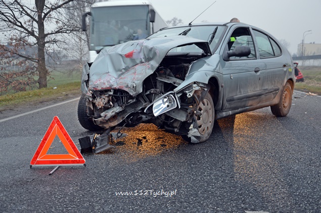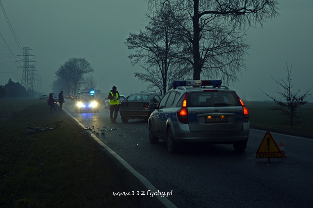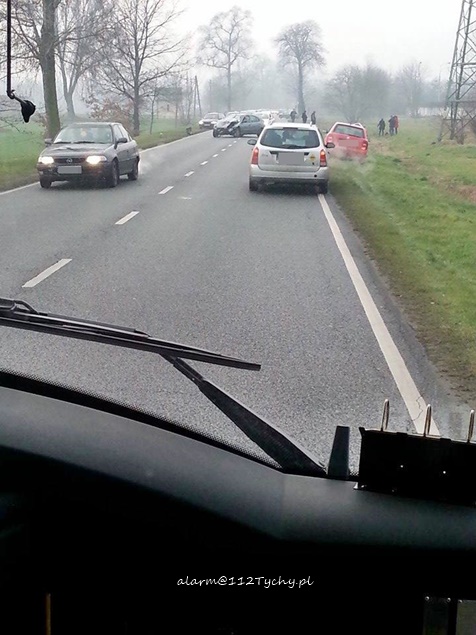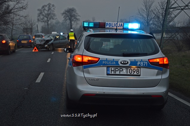 16 grudnia około godziny 14.15 na ul. Oświęcimskiej na wysokości FAP doszło do czołowego zderzenia dwóch samochodów osobowych. W zdarzeniu brały udział Renault Megane i VW Golf IV. Na miejsce wezwana została tyska Policja oraz dwa zespoły ratownictwa medycznego. Jeden z samochodów (Renault) zablokował obydwa pasy (zatrzymał się w poprzek drogi), a VW Golf wjechał do przydrożnego rowu. Kierujący Renaultem został przetransportowany do szpitala na dokładniejsze badania. Osoby podróżujące VW pozostały na miejscu. Do czasu usunięcia uszkodzonych pojazdów ruchem kierowała Policja. Na miejsce wezwany został również Policyjny technik. Po usunięciu z drogi uszkodzonego Renaulta na miejsce wezwani zostali strażacy z JRG Tychy (GBA) celem neutralizacji rozlanych płynów eksploatacyjnych. Utrudnienia w miejscu zdarzenia trwały około dwóch godzin. Ze wstępnych ustaleń Policjantów wynika, że kierujący Renaultem wykonywał manewr wyprzedzania czym doprowadził do zderzenia z VW. Dokładne przyczyny i okoliczności tego zdarzenia wyjaśniają tyscy Policjanci.