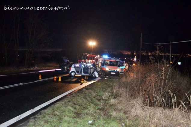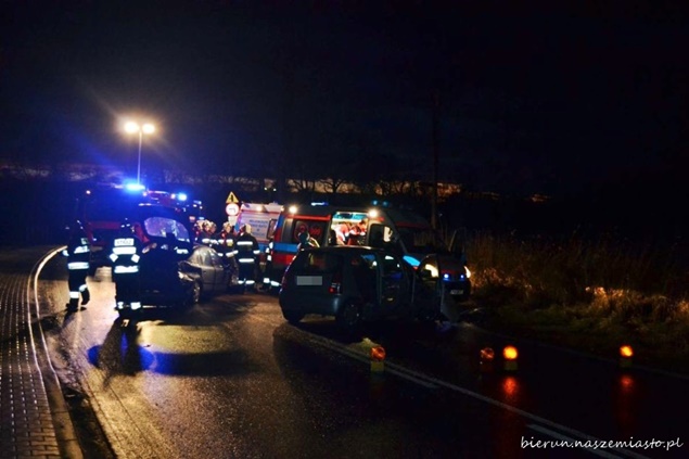 10 stycznia około godziny 16:25 do WCPR Katowice wpłynęło zgłoszenie o zdarzeniu drogowym na ul. Wawelskiej w Bieruniu, w którym udział brały trzy samochody osobowe Mitsubishi, Citroen i Kia. Na miejsce zadysponowano łącznie cztery zastępy strażaków: dwa z JRG Tychy(GCBA,SCRt) i dwa z OSP Bieruń Nowy (SLRt,GBARt), dwa patrole policji i dwa ZRM. W zdarzeniu poszkodowane zostały trzy osoby. Dwie osoby zostały zabrane do szpitala na dalsze badania. Działania strażaków polegały na oświetleniu miejsca zdarzenia, jego zabezpieczeniu, odłączeniu akumulatorów w rozbitych pojazdach, a następnie neutralizacji płynów eksploatacyjnych. Ze wstępnych ustaleń bieruńskich policjantów wynika, że kierujący samochodem Mitsubishi nie dostosował prędkości do panujących warunków drogowych, wpadł w poślizg i uderzył czołowo w jadący z naprzeciwka samochód Citroen, a następnie pojazdy zostały odrzucone na nadjeżdżającą Kię. Dokładną przyczynę wypadku wyjaśni policyjne dochodzenie. Utrudnienia w ruchu trwały około dwóch godzin.