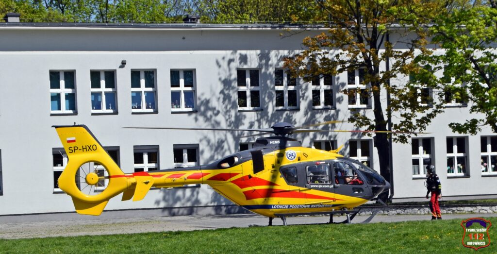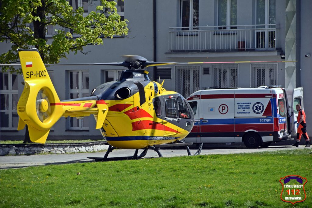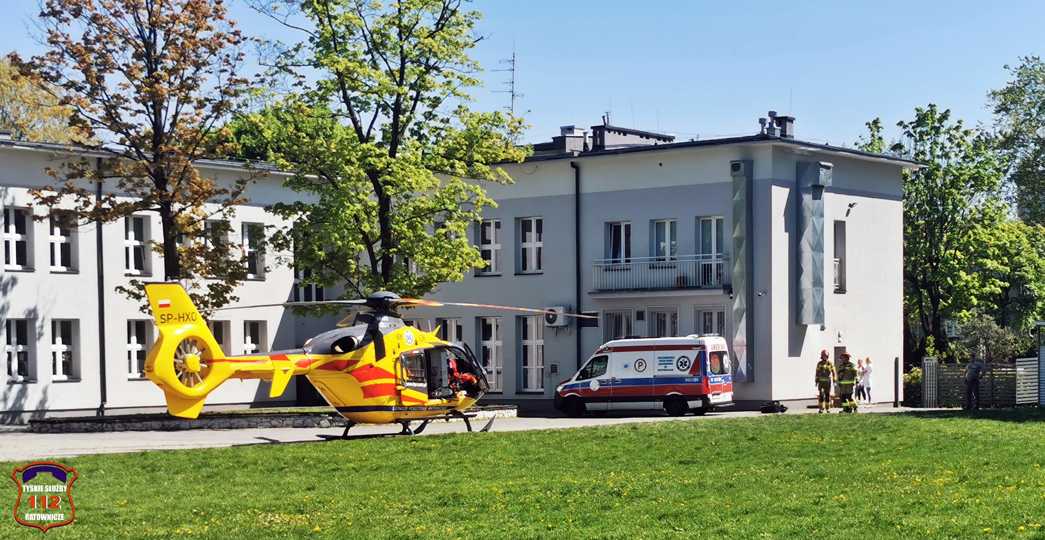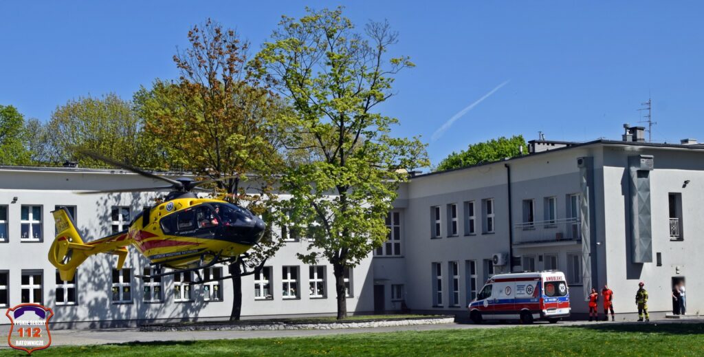 Załoga latającej karetki została wezwana do pomocy w transporcie mężczyzny (24 lat), który najprawdopodobniej napił się środka do udrażniania rur. Na miejscu działali już ratownicy medyczni z naziemnej karetki WPR Katowice.