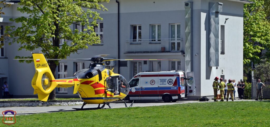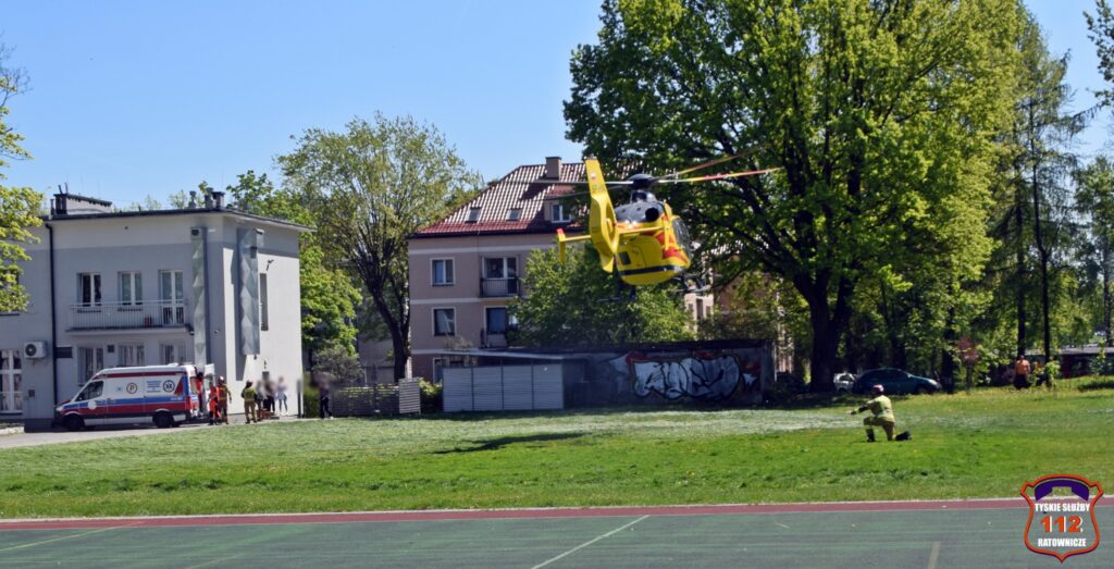 Mężczyzna po zaopatrzeniu został przetransportowany drogą lotniczą do Szpitalnego Oddziału Ratunkowego w Sosnowcu.