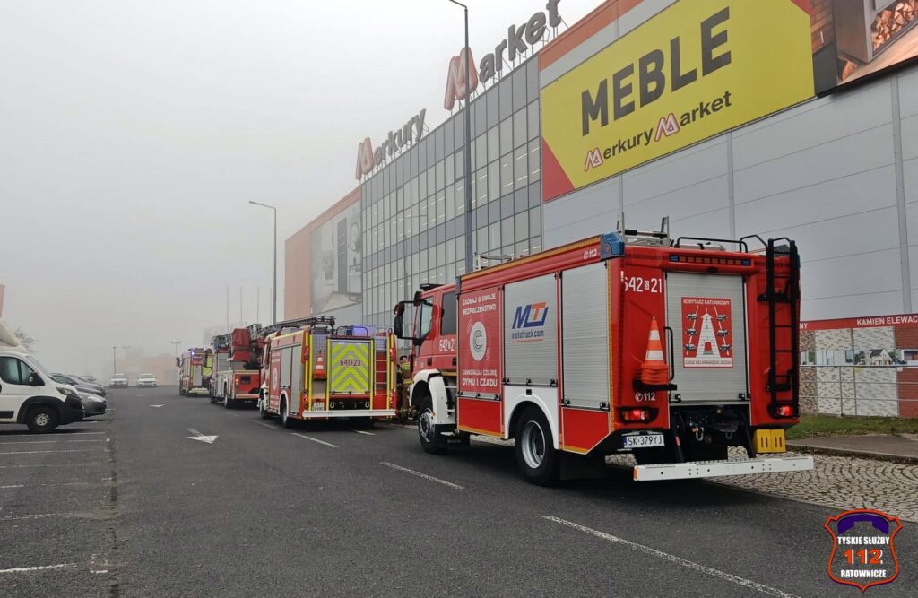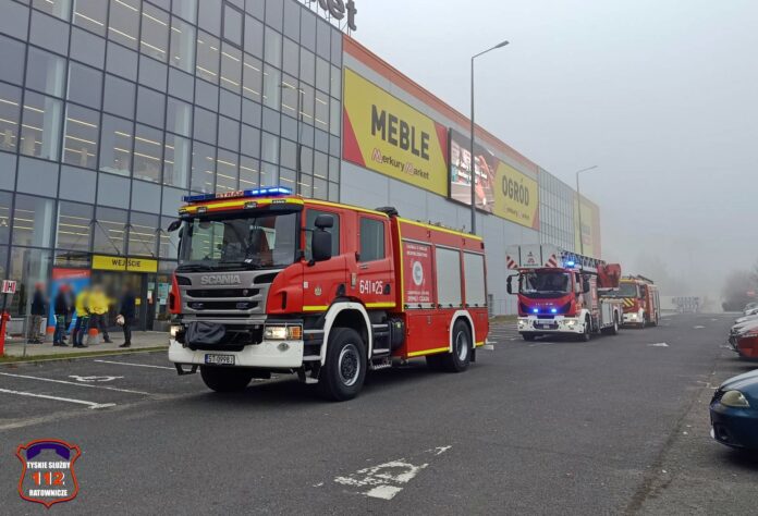 8 listopada po godzinie 9 dyżurny SK KM PSP Tychy otrzymał zgłoszenie z centrali monitoringu pożarowego o zagrożeniu pożarem w jednym z marketów przy ul. Towarowej.