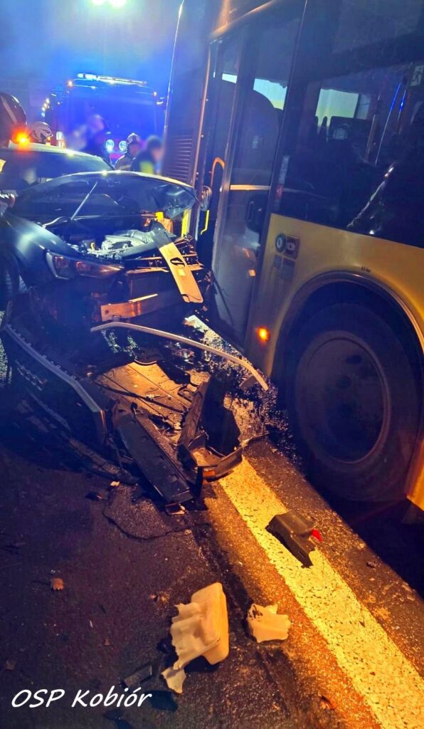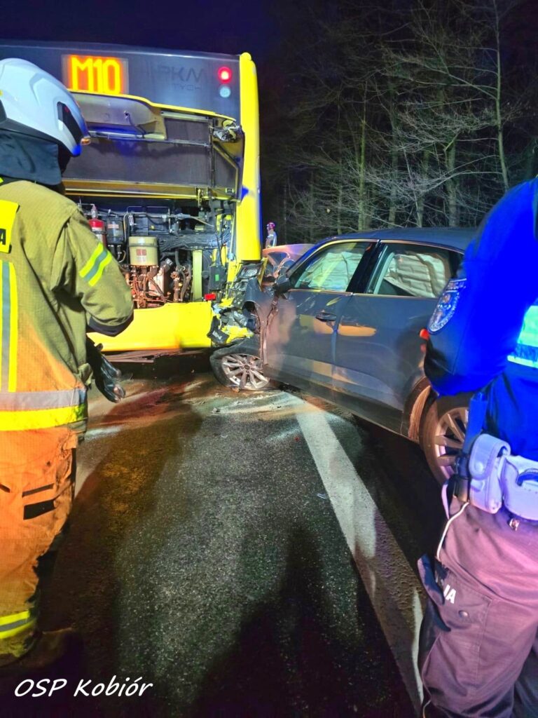 28 stycznia około godziny 16:40 w Kobiórze na trasie DK1 przed skrzyżowaniem z trasą DW 928 (kierunek Bielsko – Biała) doszło do zdarzenia drogowego z udziałem autobusu komunikacji miejskiej (linia M10) oraz samochodu osobowego marki Audi.