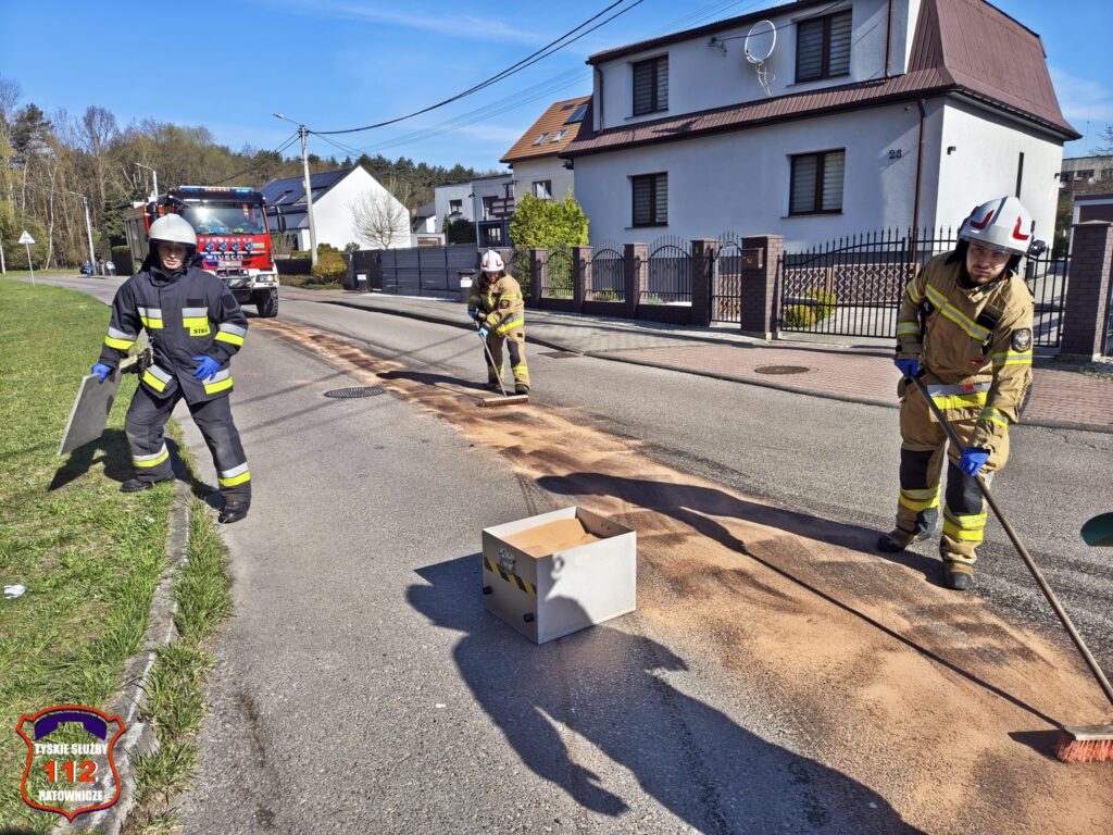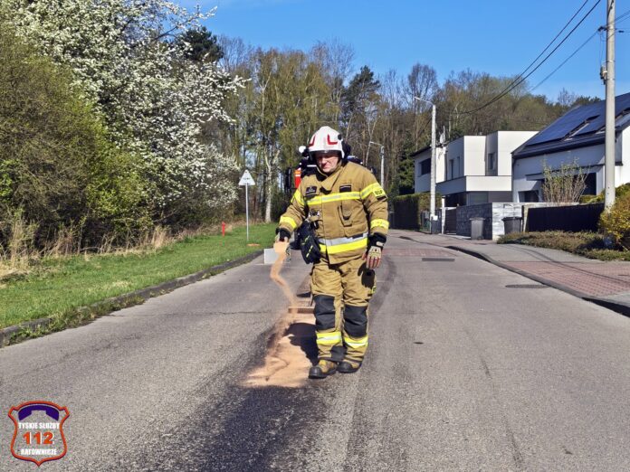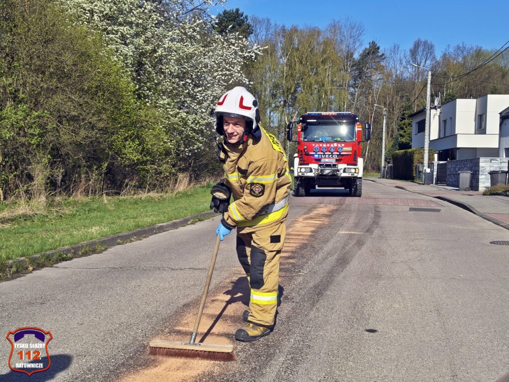 22 kwietnia około godziny 8:50 dyżurny SK KM PSP Tychy otrzymał zgłoszenie o plamie oleju silnikowego na ul. Nad Jeziorem o długości ok. 200 – 250m.