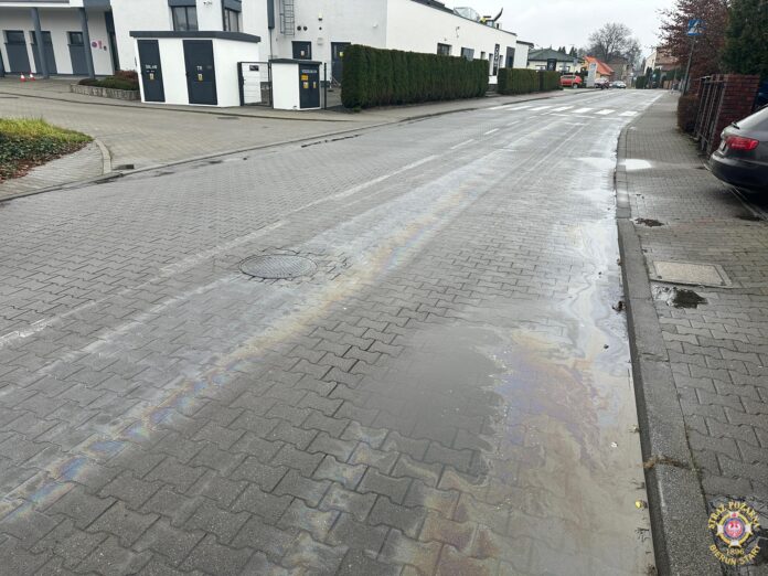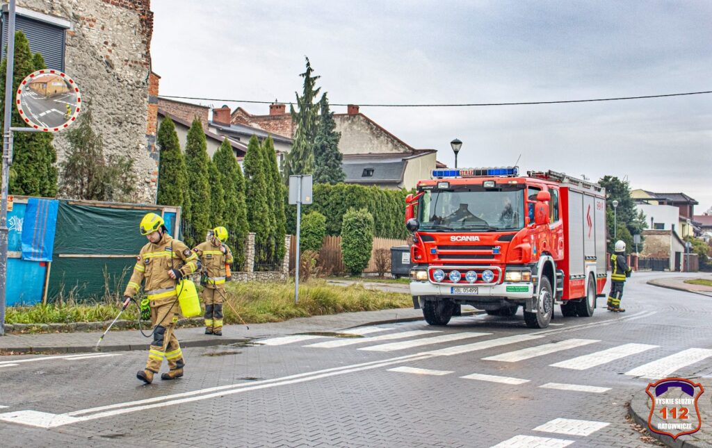 10 listopada po godzinie 9:45 dyżurny SK KM PSP Tychy otrzymał kilka zgłoszeń z terenu miast Bieruń oraz miasta Tychy o plamie substancji ropopochodnej na jezdni.