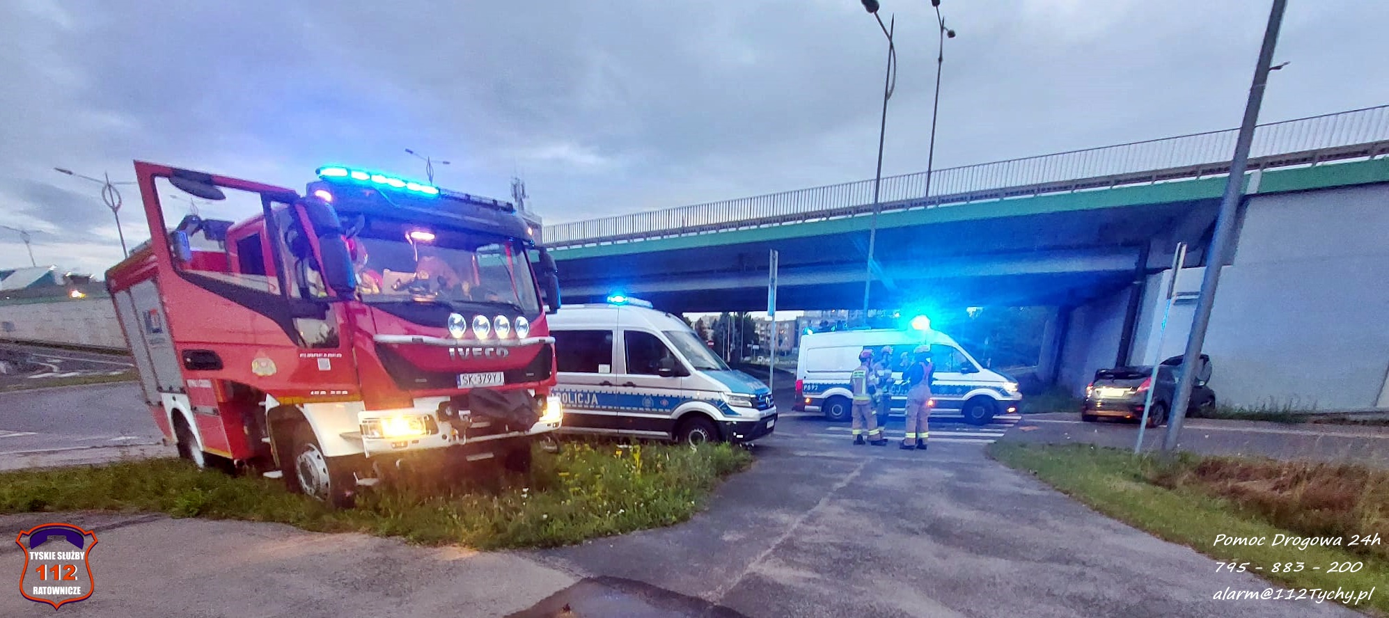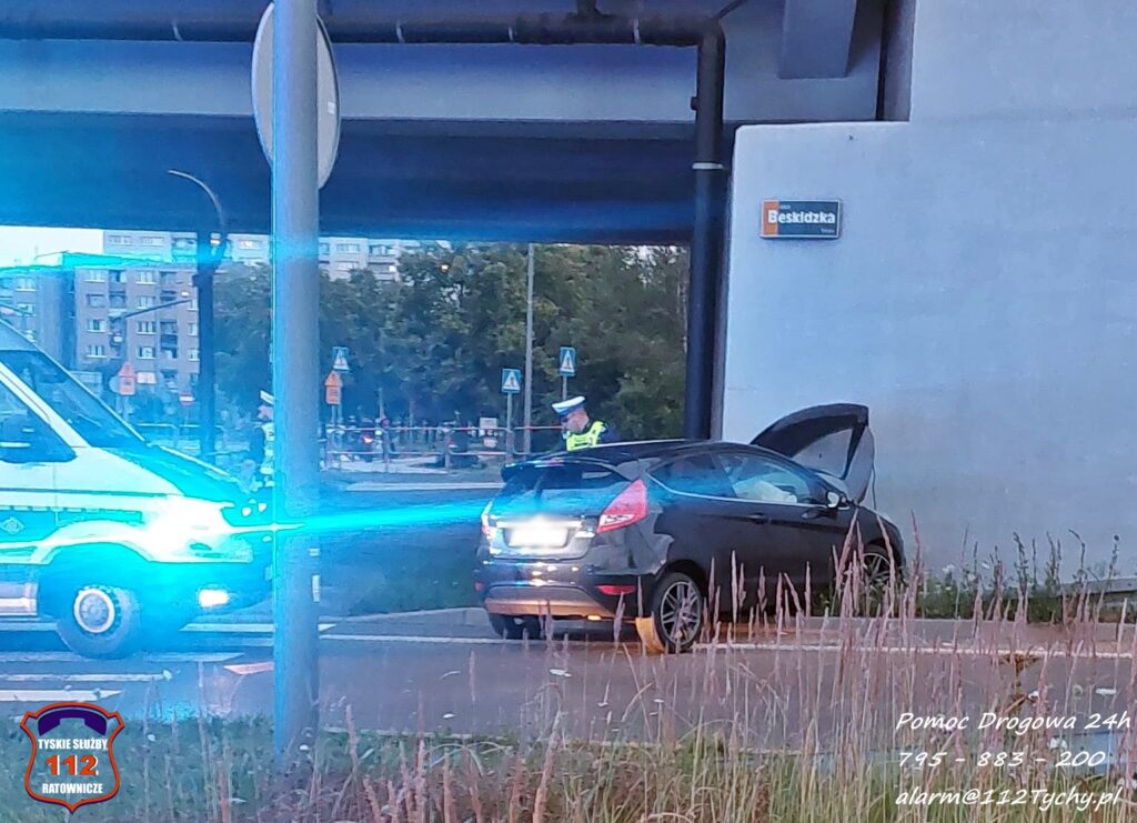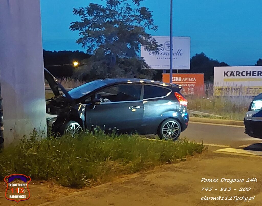 17 lipca około godziny 20:35 dyżurny KMP Tychy otrzymał zgłoszenie, że samochód osobowy marki Ford uderzył w betonowy filar wiaduktu na rondzie pod trasą DK1.