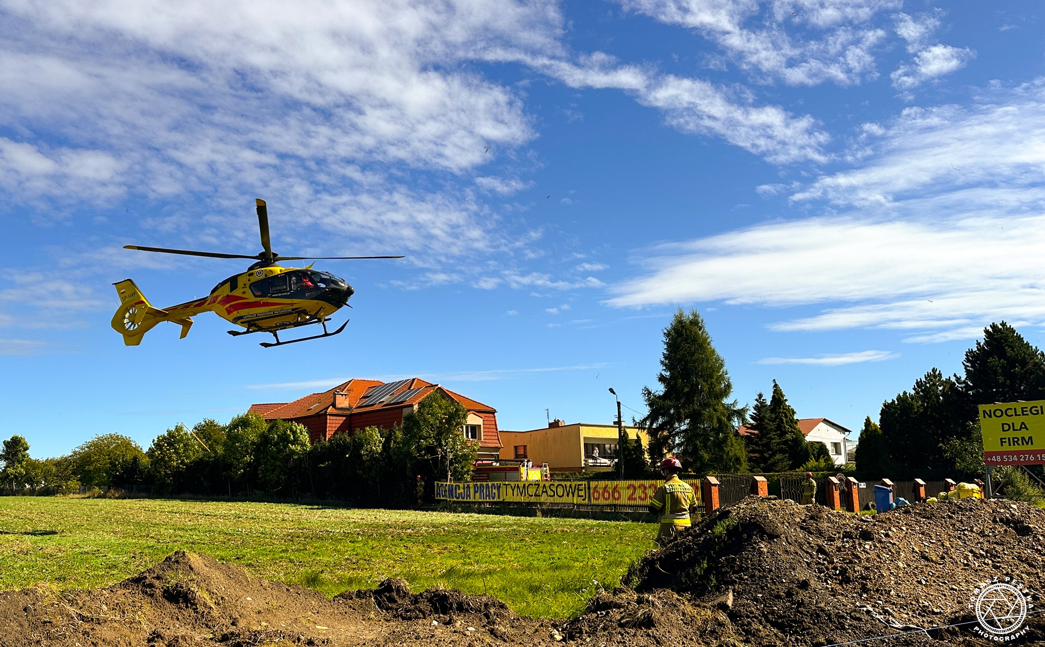 Śmigłowiec wylądował tuż obok posesji na terenie której doszło do nieszczęśliwego wypadku.
