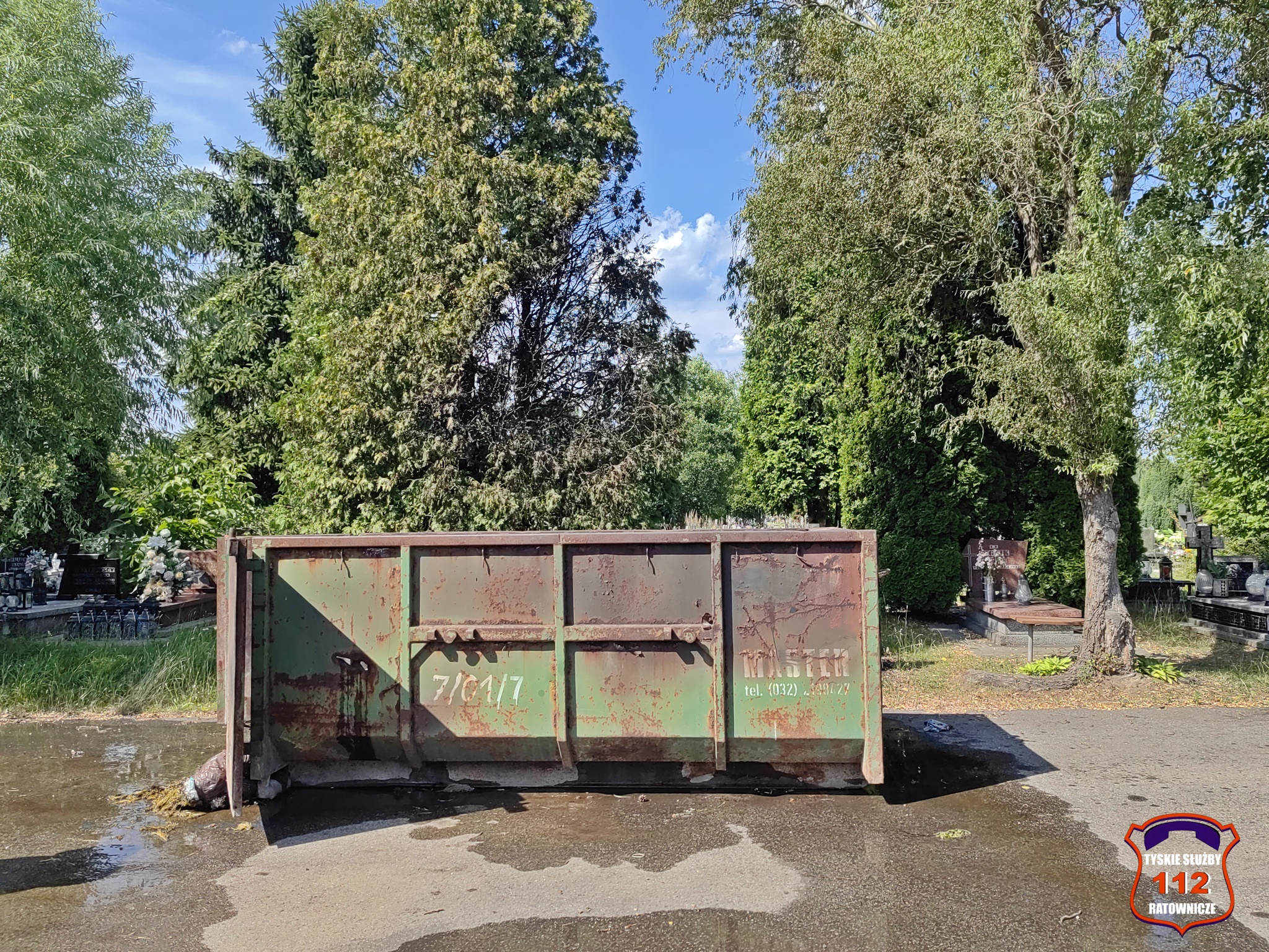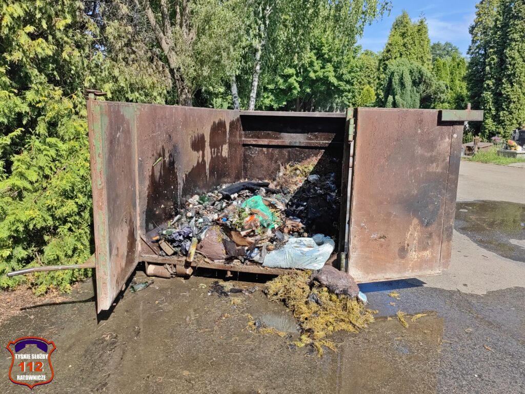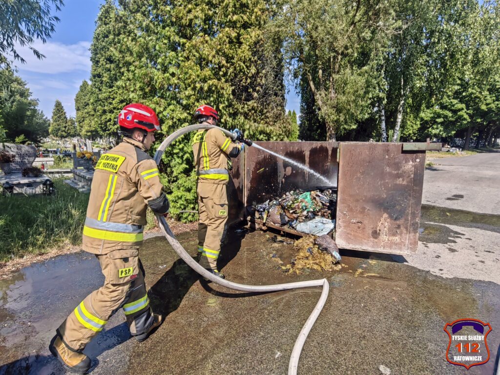 6 lipca około godziny 15:30 dyżurny SK KM PSP Tychy otrzymał zgłoszenie o pożarze kontenera na odpady i krzewów na terenie cmentarza komunalnego przy ul. Oświęcimskiej.