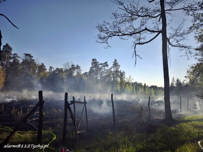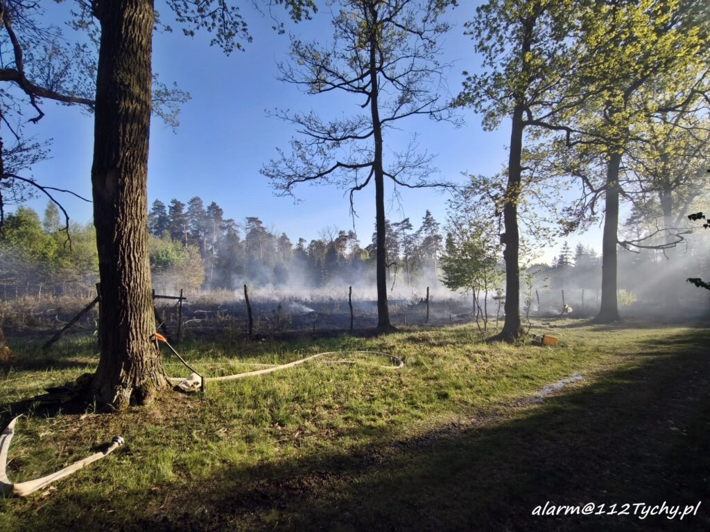 28 kwietnia około godziny 17:10 dyżurny SK KM PSP Tychy otrzymał zgłoszenie o pożarze lasu w rejonie przepompowni przy al. Bielskiej.