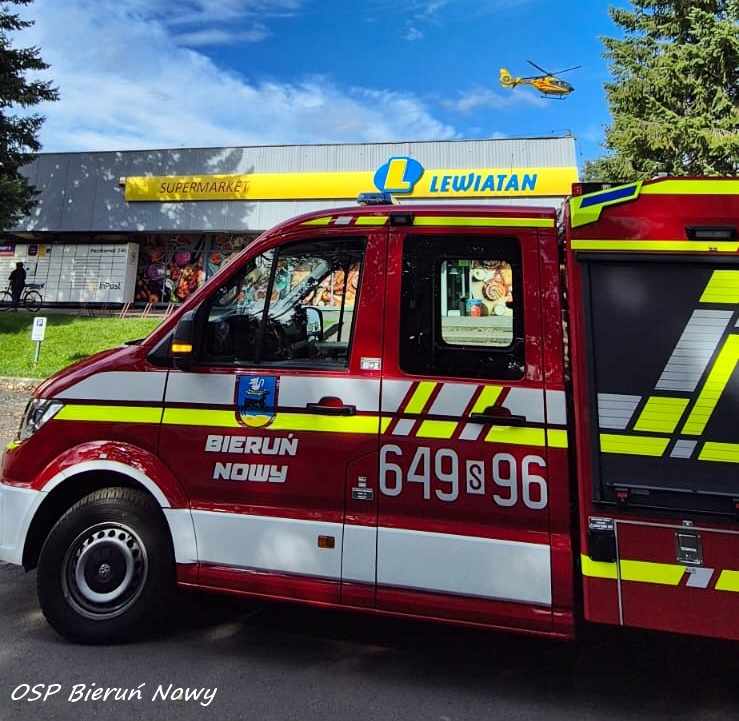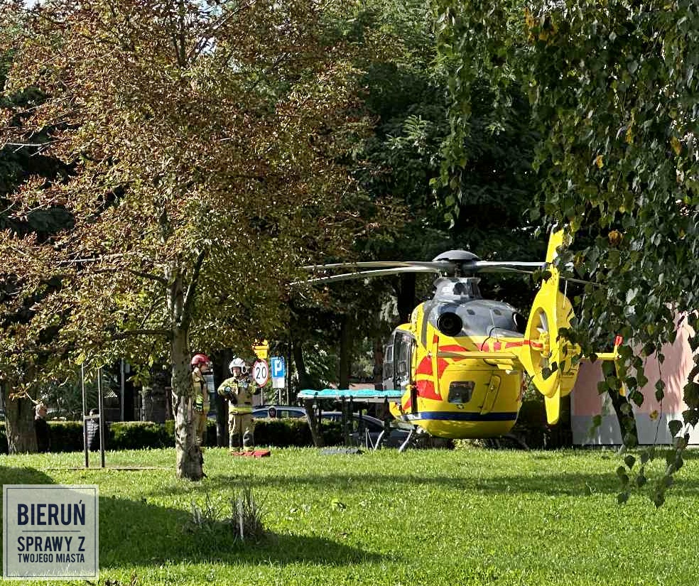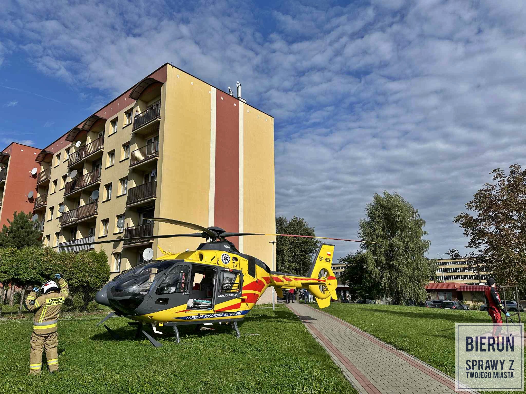 Zabezpieczenie lądowiska pełniły zastępy strażaków OSP Bieruń Nowy oraz JRG Bieruń, a działania służb zabezpieczał patrol Policji z KPP Bieruń.