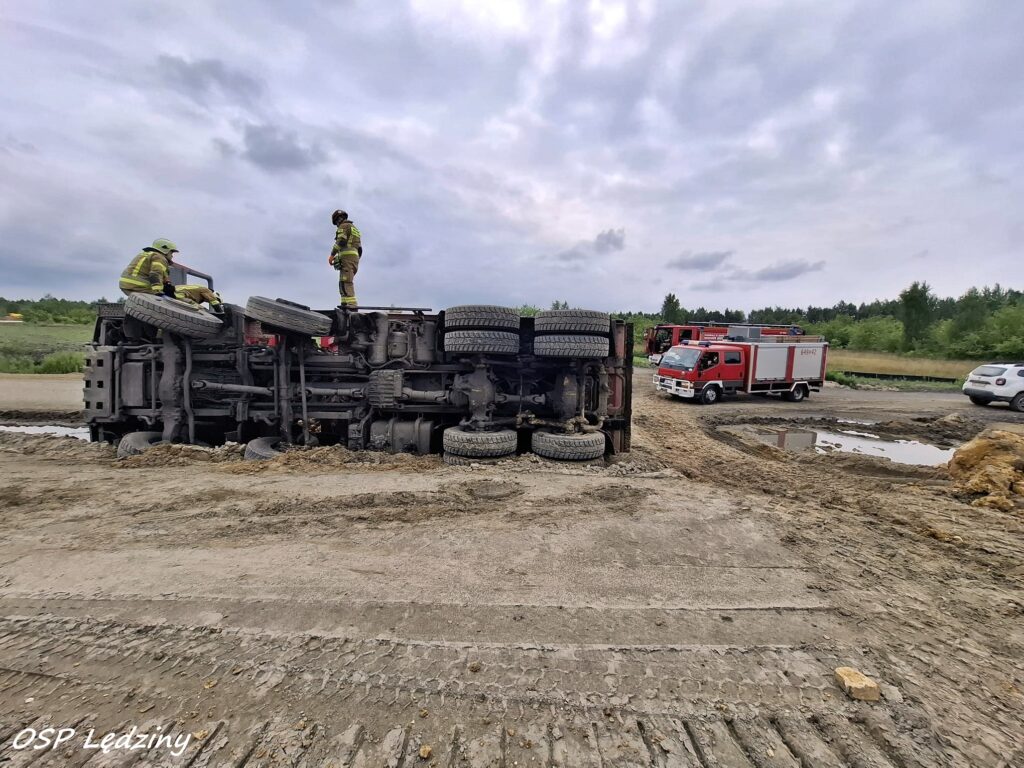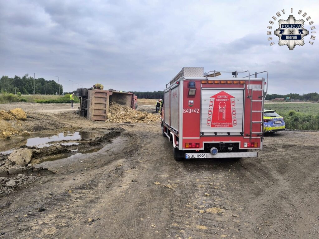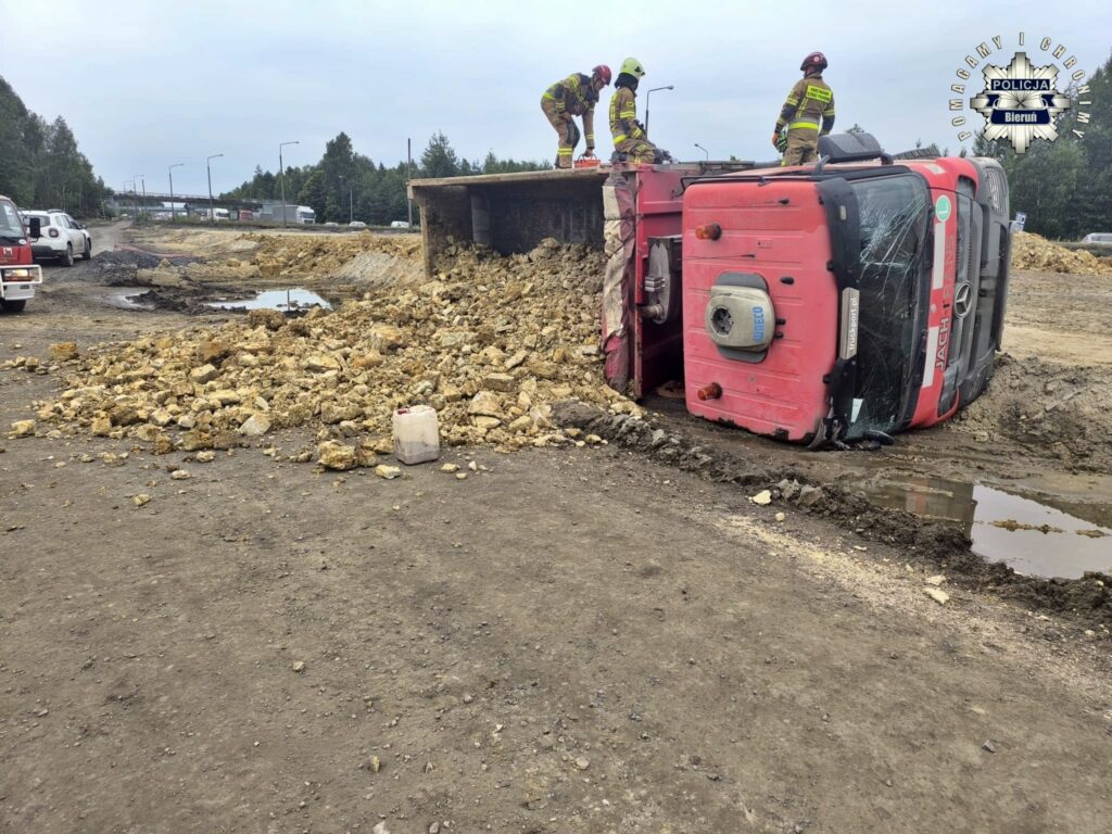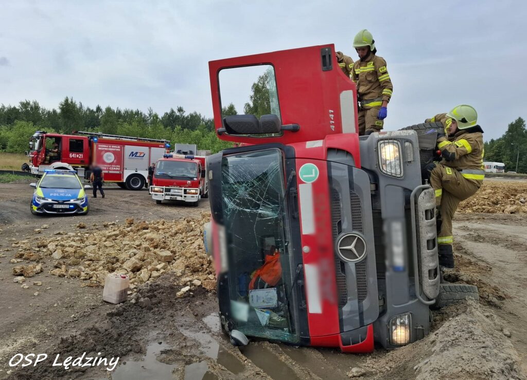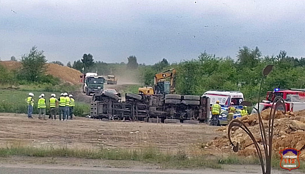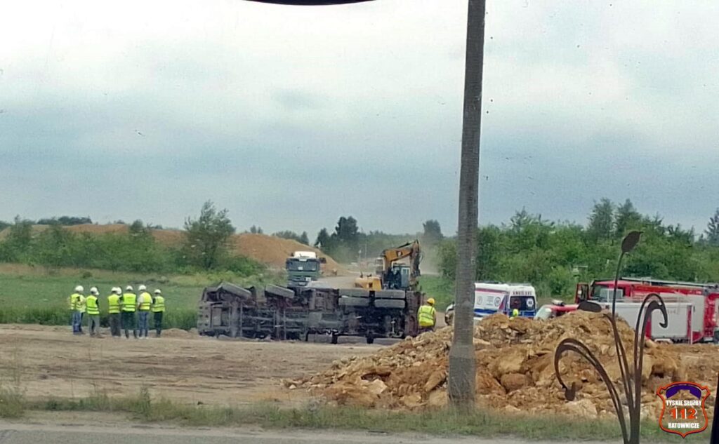 25 lipca około godziny 12:45 na terenie budowy trasy S1 w Lędzinach przy ul. Hołdunowskiej doszło do wywrócenia się na bok samochodu ciężarowego marki Mercedes (wywrotka).