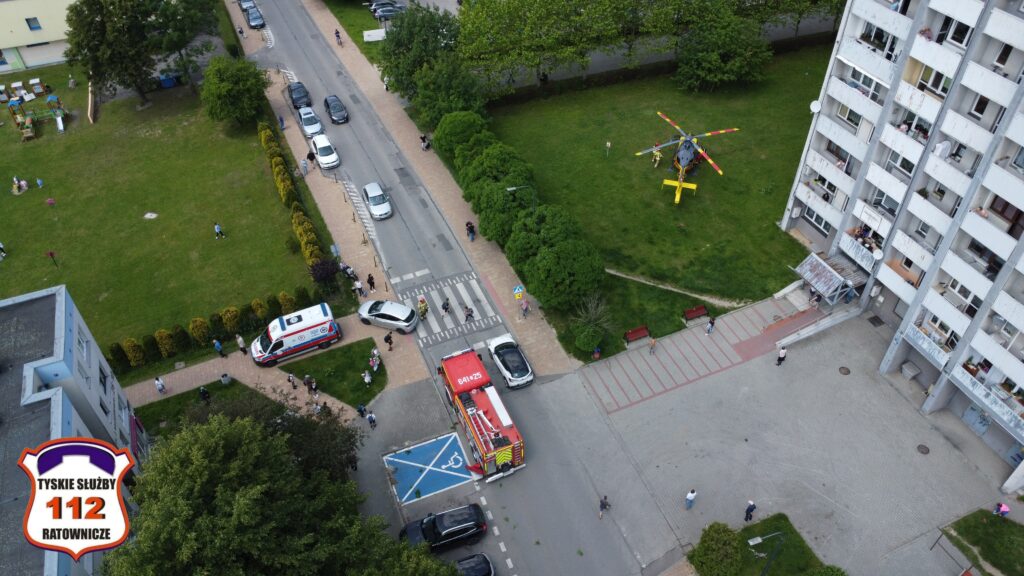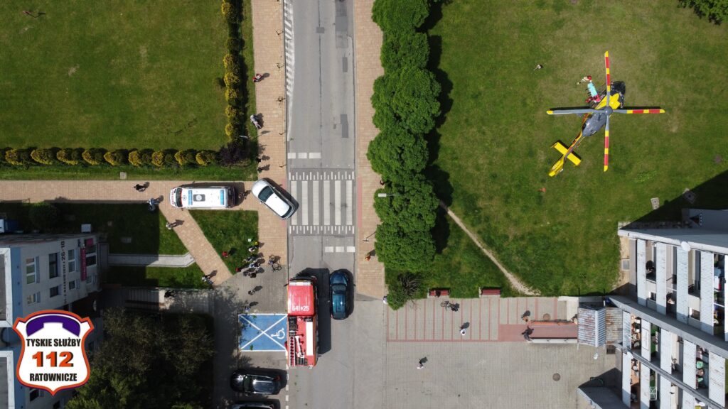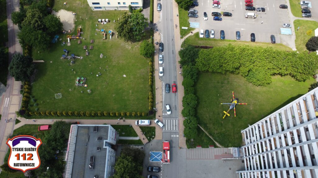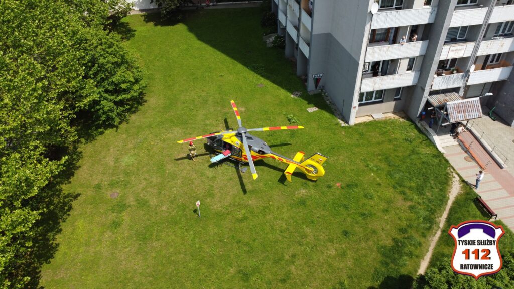 a następnie został on przetransportowany drogą lotniczą do szpitala w Katowicach Ochojcu.