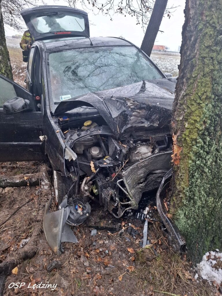Ze zgłoszenia wynikało, że kierujący samochodem osobowym marki Ford uderzył w bariery energochłonne, a następnie jego pojazd wypadł z drogi przejechał ok. 200m przez łąkę i uderzył w drzewo w pobliskim lesie.