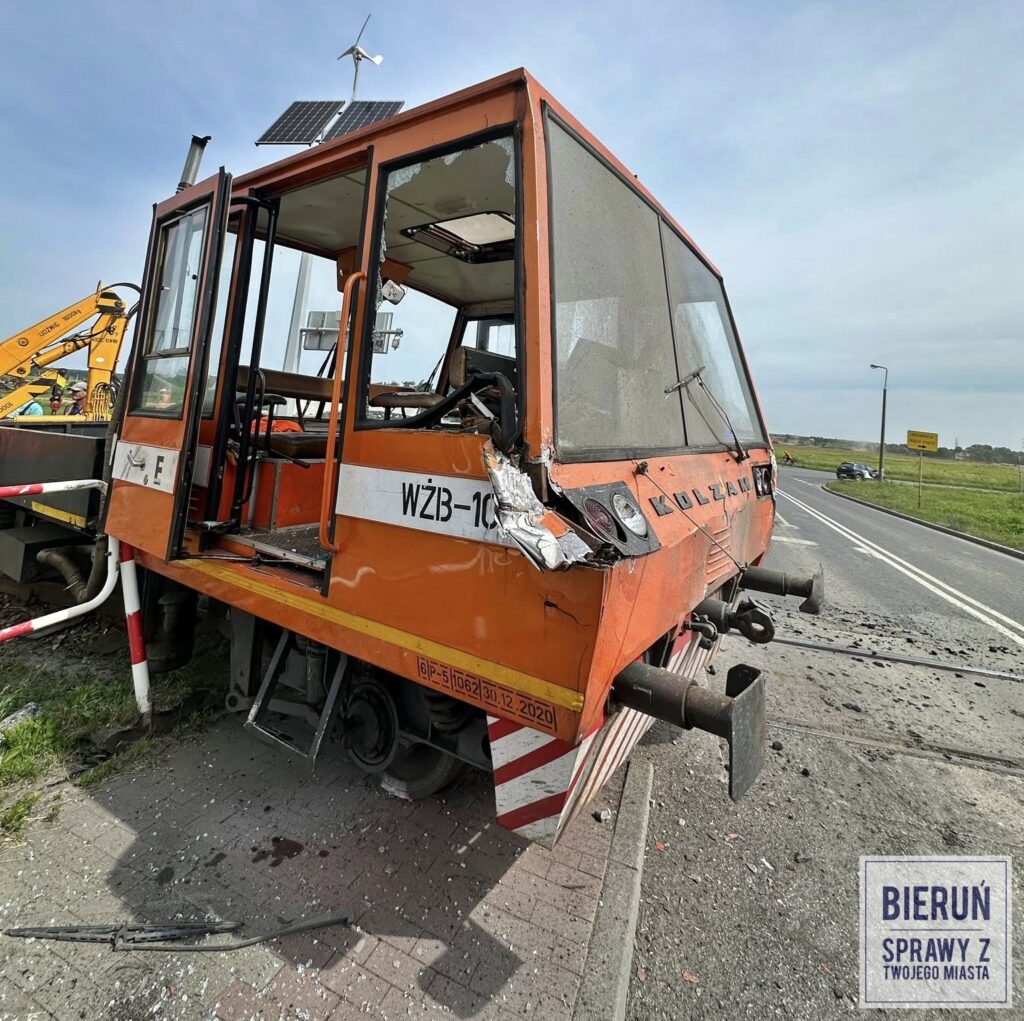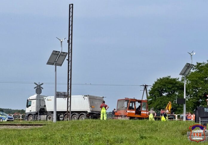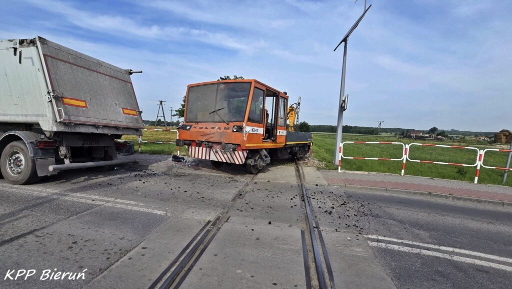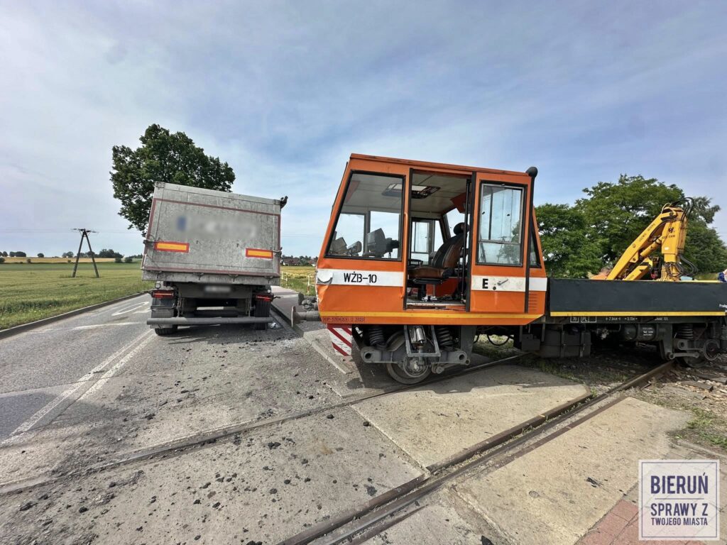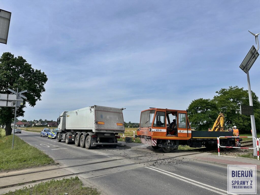 Zderzenie drezyny z ciężarówką na przejeździe drogowo – kolejowym w ciągu ul. Bogusławskiego w Bieruniu