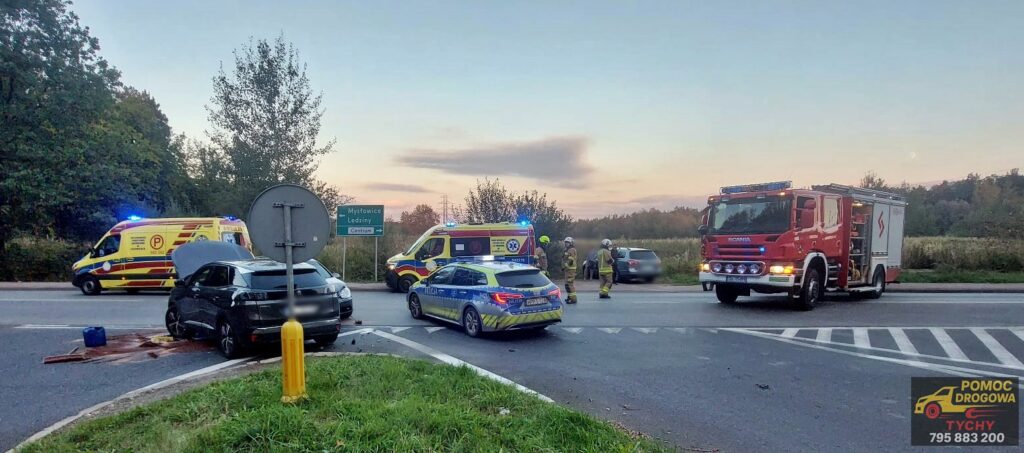 Ze wstępnych ustaleń pracujących na miejscu policjantów wynika, że sprawcą zdarzenia jest kierowca Peugeota, który jadąc ul. Lędzińską wykonywał manewr skrętu w lewo w kierunku ul. Turyńskiej (DK 44), a kierowca VW jechał prosto w kierunku skrzyżowania z ul. Ekonomiczną.