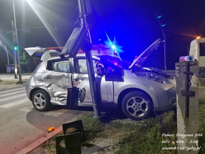 W wyniku zderzenia obu pojazdów, osobówka uderzyła dodatkowo w słup sygnalizacji świetlnej uszkadzając go.